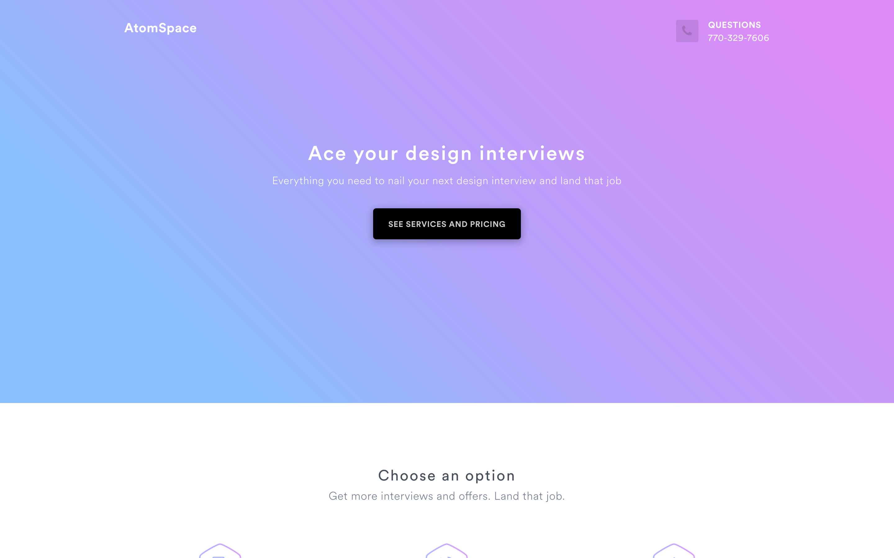 It has been exactly 1 month since I launched YC-Careers and got to the top of PH. This week I’m excited to launch AtomSpace. I wanted to give you guys a chance to try it out first since time slots are limited. AtomSpace is a service that helps designers prepare for every step of the design job application process with offline resume and portfolio reviews, mock design interviews, and mock whiteboard interviews.