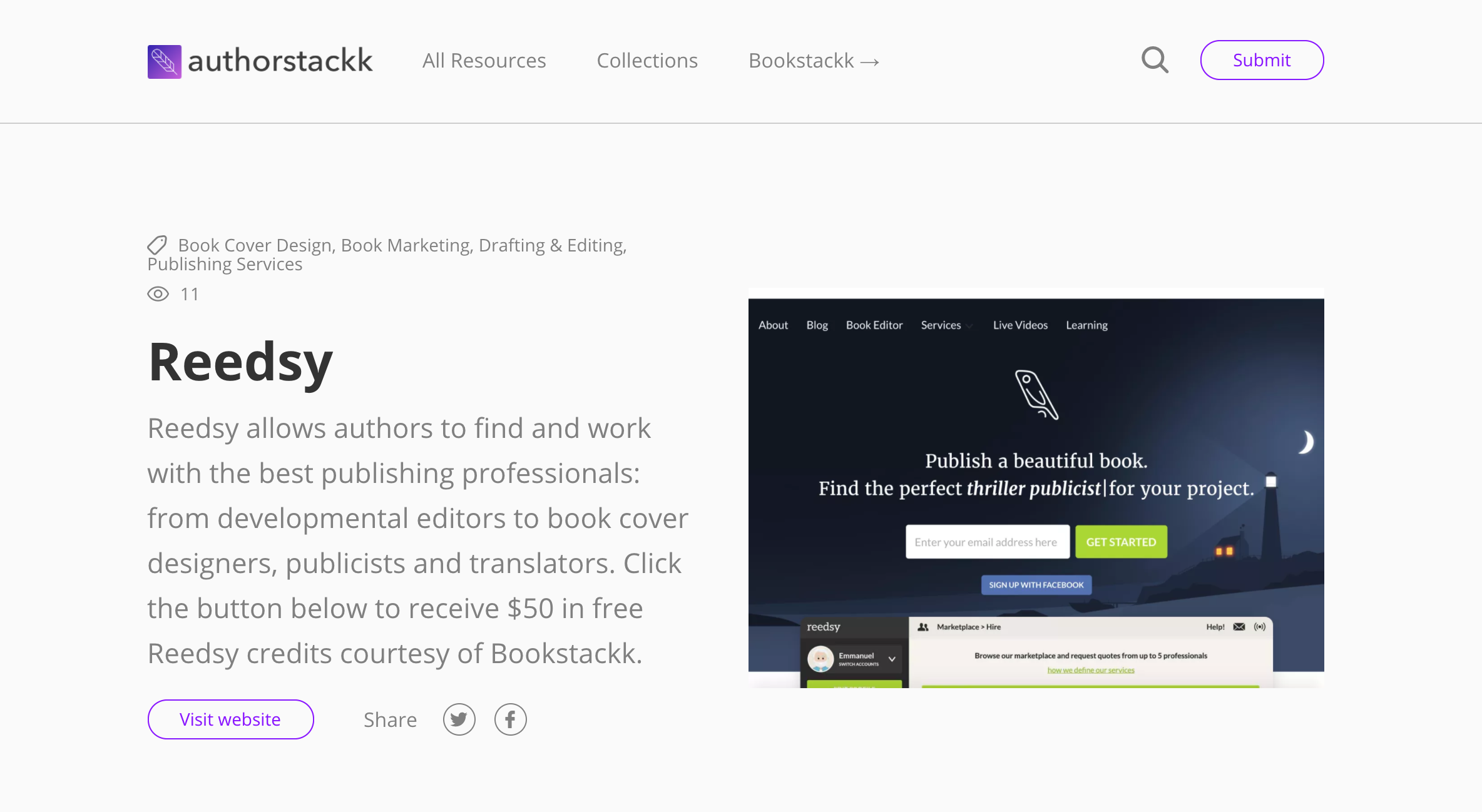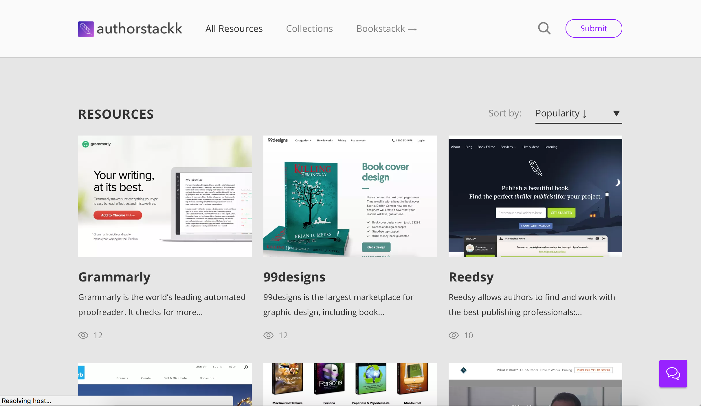 AuthorStackk is a curated directory of resources & tools to help writers publish their written work. It includes 16 relevant categories, such as Book Marketing, Drafting & Editing, Book Cover Design, Writing Software, and Publishing Services.