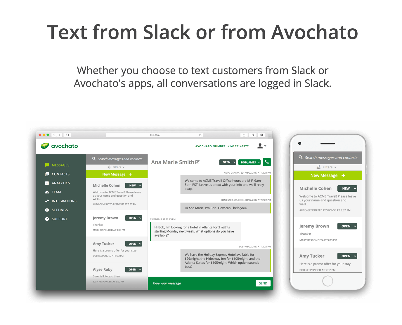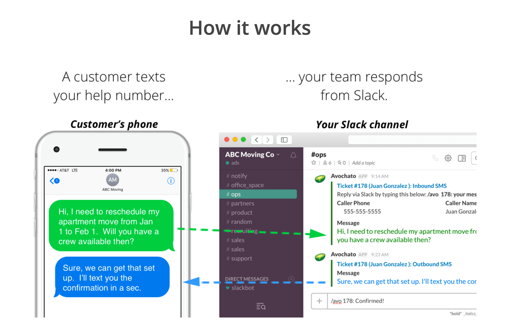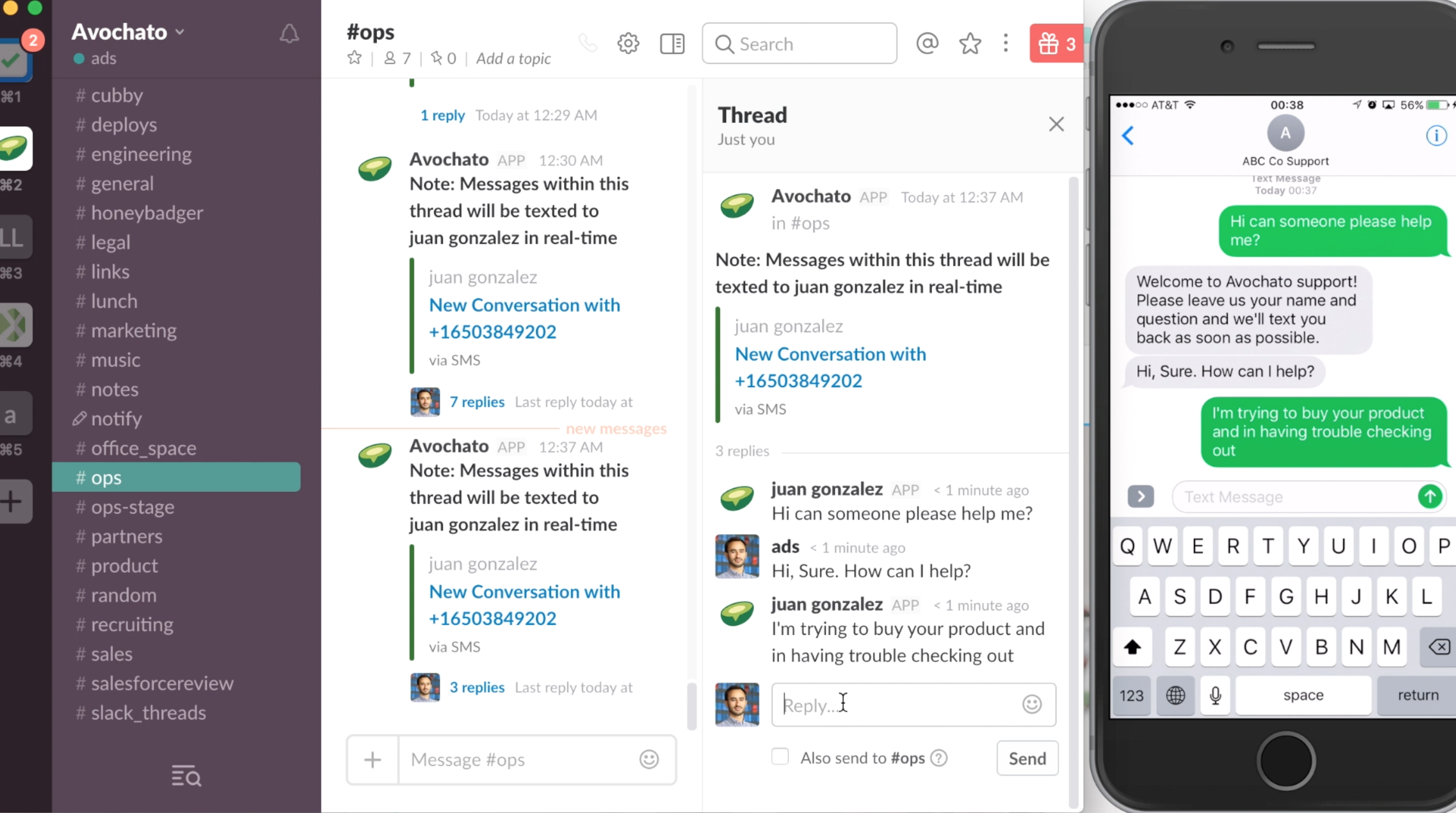 Check out this great new tool for communicating with customers via SMS. It integrates with Slack's new threading feature, which makes it really easy to handle all your text convos right through Slack.