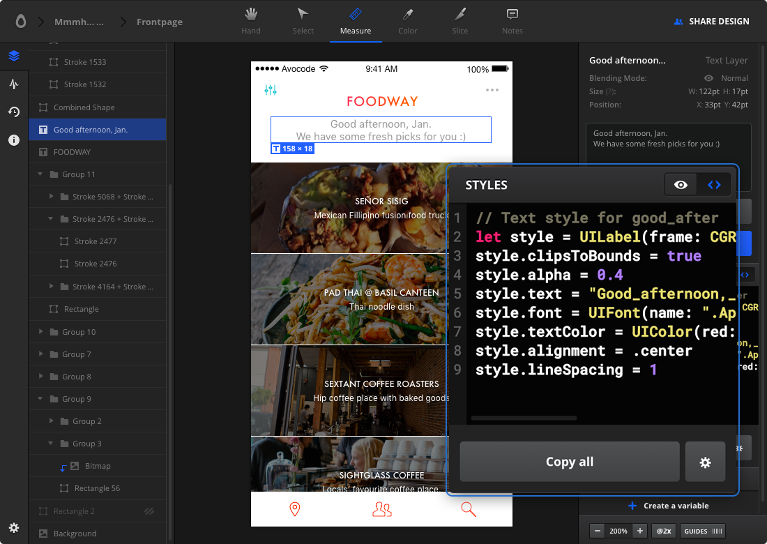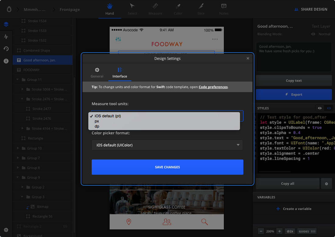 I'm loving this. Combining Avocode plus freebbble.com UI kits would be a really interesting way to quickly prototype a new app.