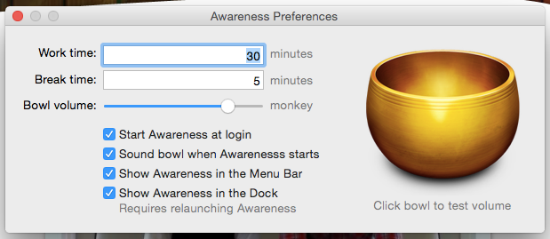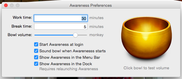 Awareness displays how long you've been using your computer without a break in the menu bar.