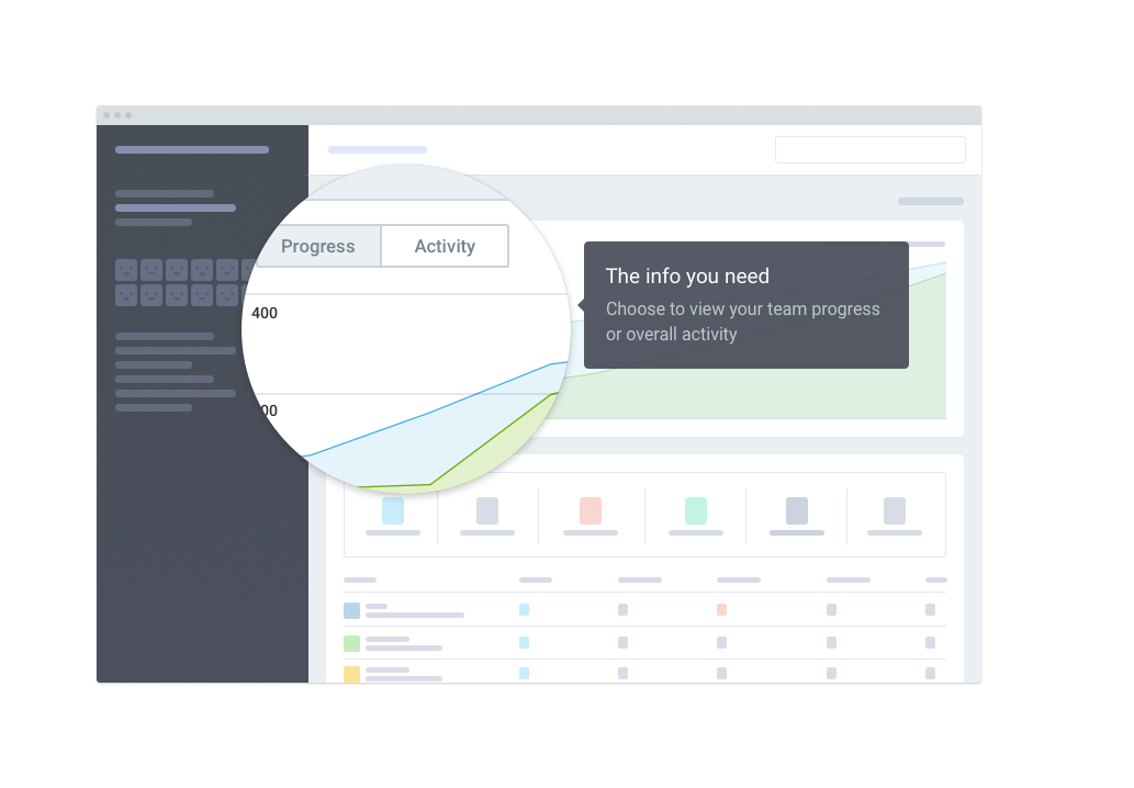 Dashboards give you a high-level view of your project activity and team progress in the blink of an eye, instead of getting lost in the details 👓