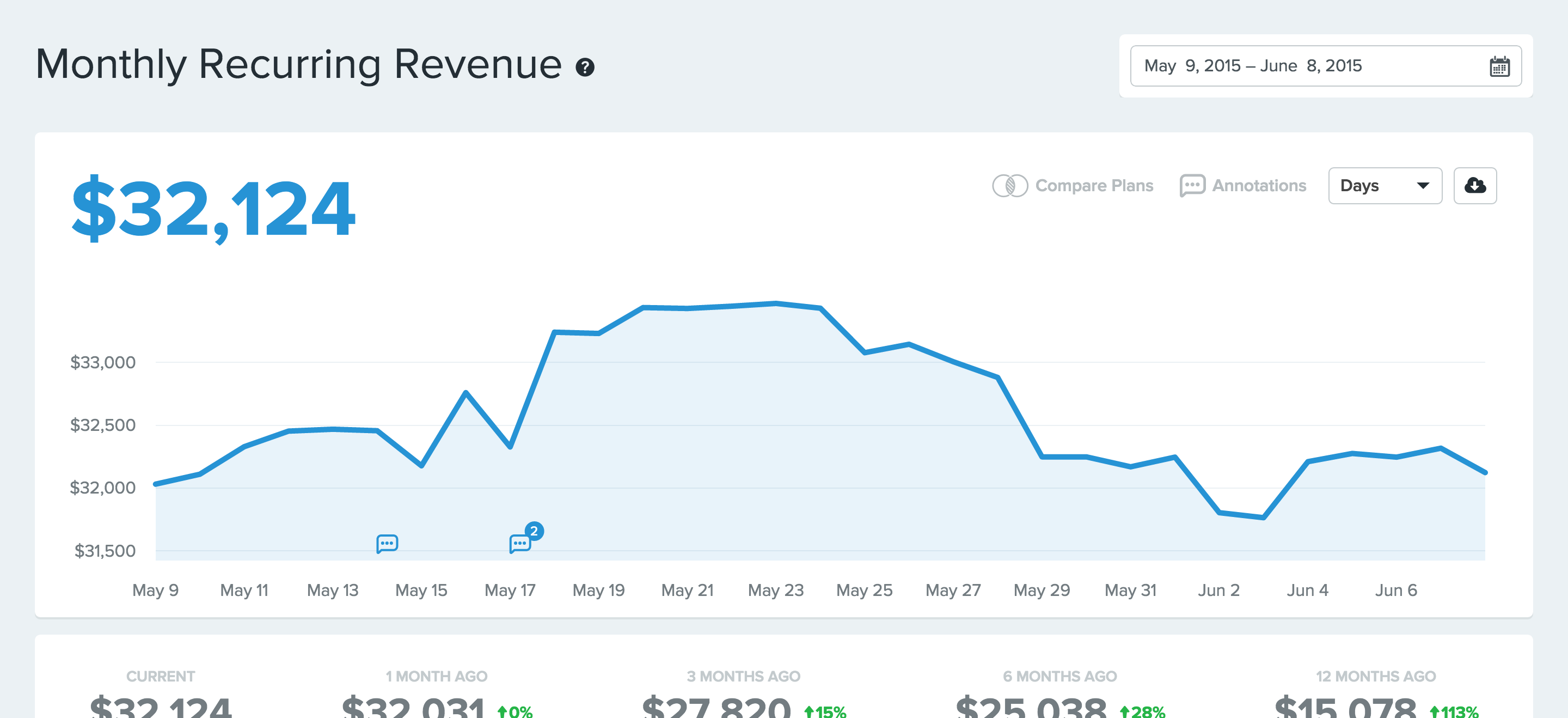 If you've ever had to try to manually calculate mrr or other saas metrics, you know this is a big deal. Having done that at KISSmetrics I'm really impressed they can do it with one click; did stripe add anything special to make that possible? I always thought you'd need at least one or two things set up to pull it off correctly.