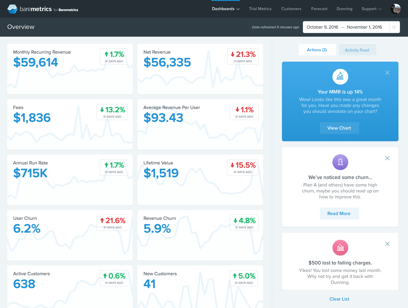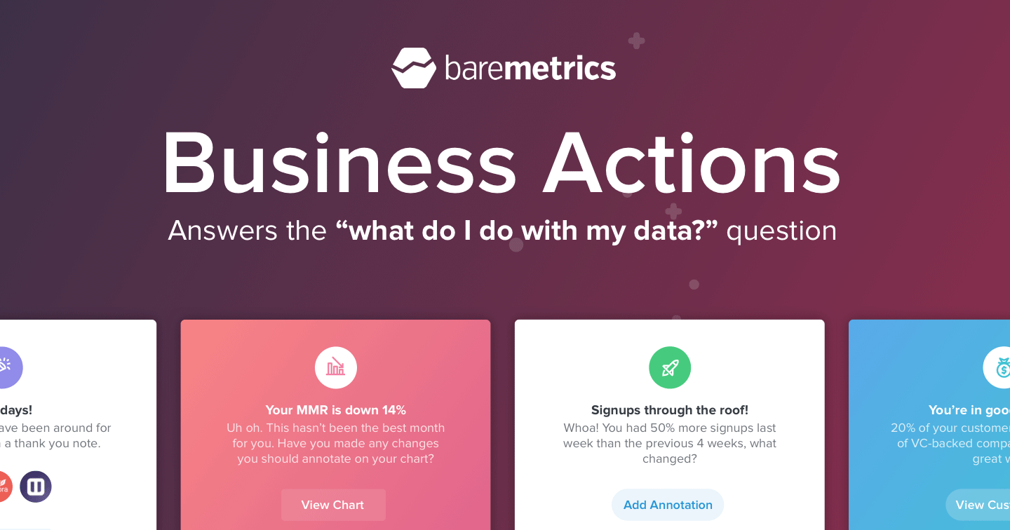 Great feature. Are there any plans to crunch anonymized metrics across the board and give companies insights into how they're doing to compared to other similar cohort companies? Always thought that would be interesting data for founders to help them figure out if they are doing well or not. I'd assume Baremetrics is one of the few companies to have enough S… See more