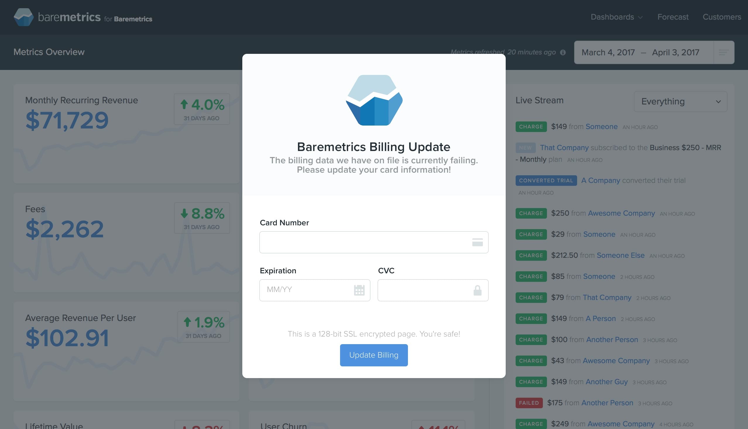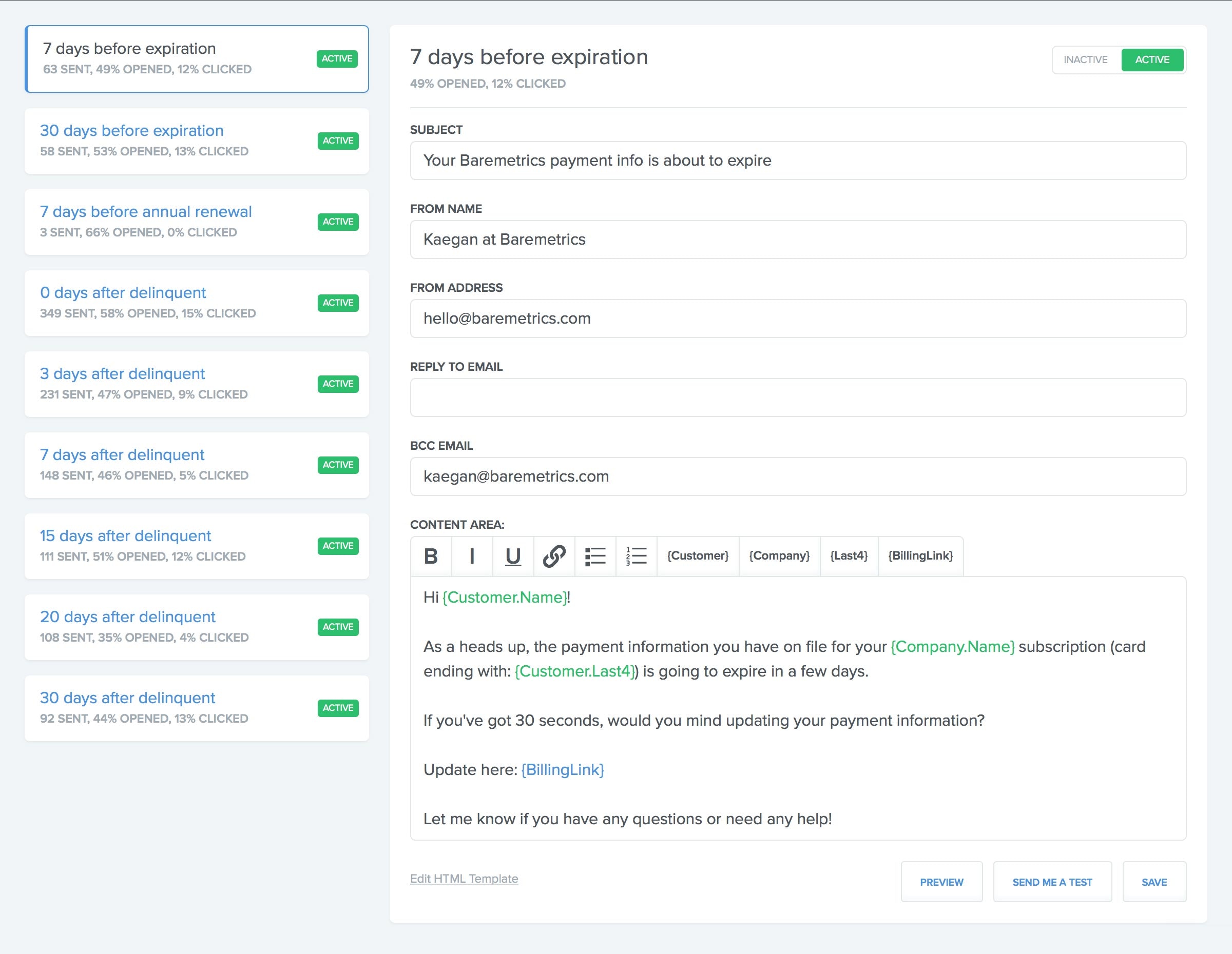 Another great feature for Baremetrics. This is worth its weight in gold for startups that don't have the time to be chasing failed payments all day. Thanks @shpigford and the team!