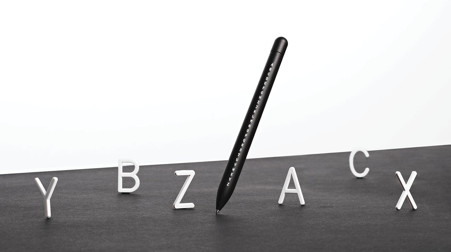 Its based on the Alphabet which lets a thinker express their greatest ideas. Especially true for those that program most of the day (like me). Hope everyone enjoys the new pen!