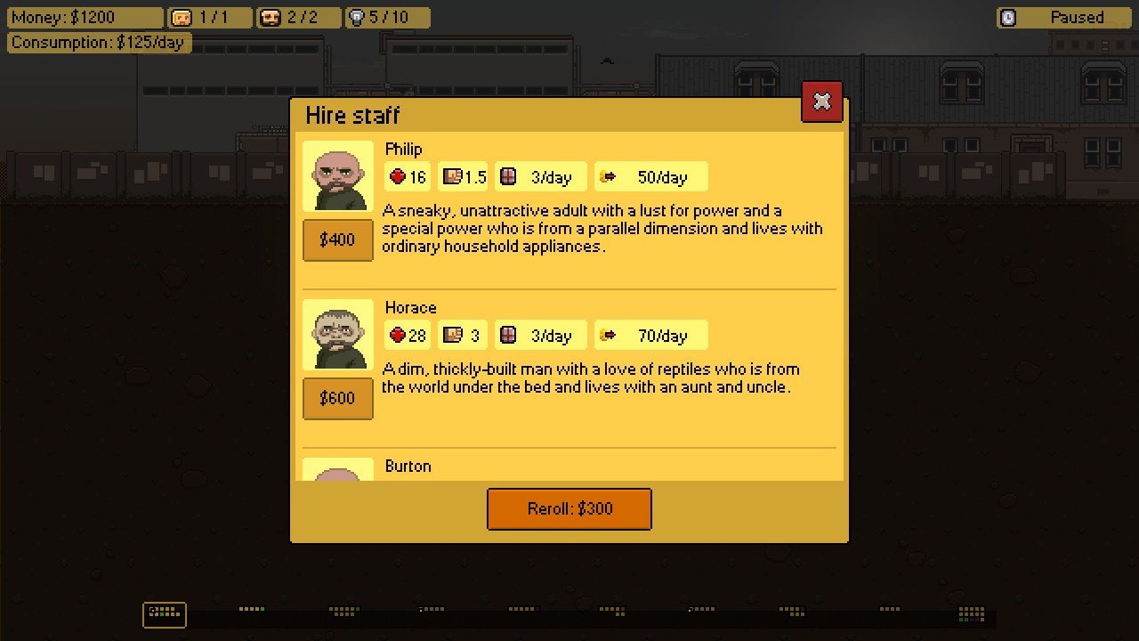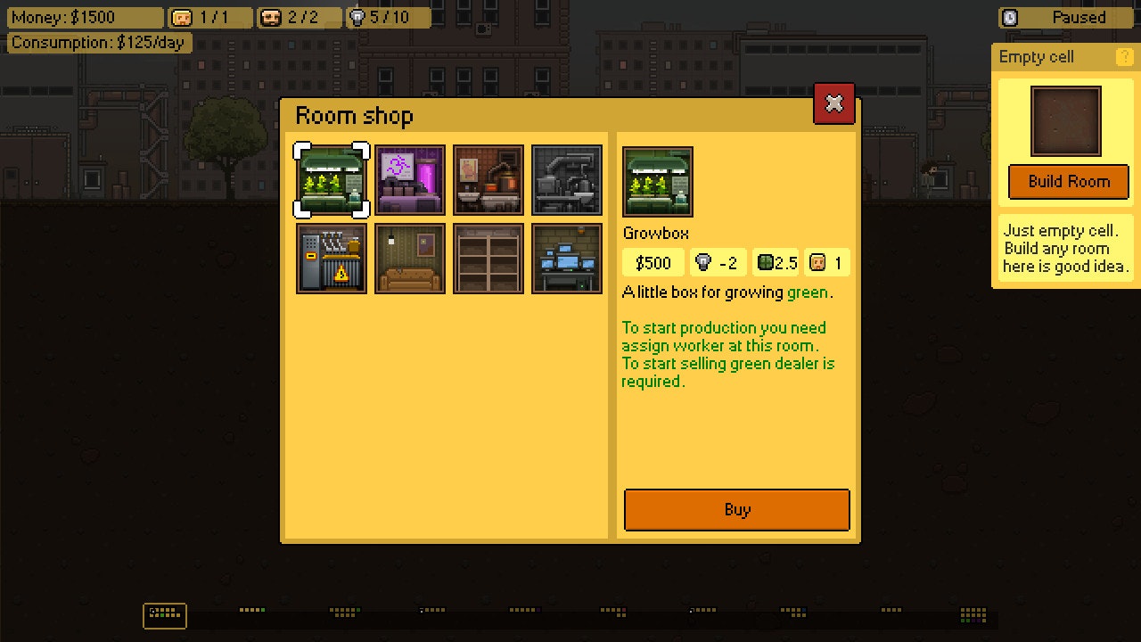 "Basement is a strategy game, where you play as a desperate scientist who chose the wrong path in his life. That path seemed easy, but turned into a deadly one. You have no choice but to build the most effective enterprise and stay alive in a cruel world of illegal business."