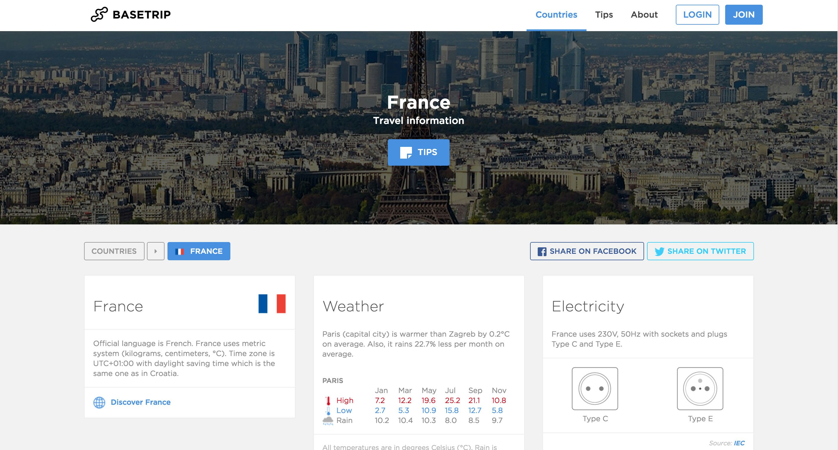 I like the idea! But Country-wide information can actually be not that useful - City information makes much more sense but I get that it is a lot more work and harder to gather. But for any country, the prices, weather etc etc all varies extremely widely from city to city