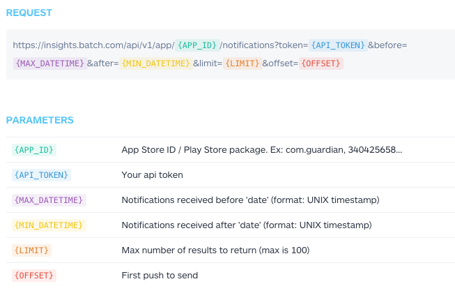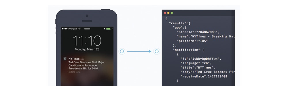 Our API let's you grab any push from any app in realtime so you can integrate push notifications data within your CMS, intelligence dashboard or alert system: track news, track brands, track delivery.