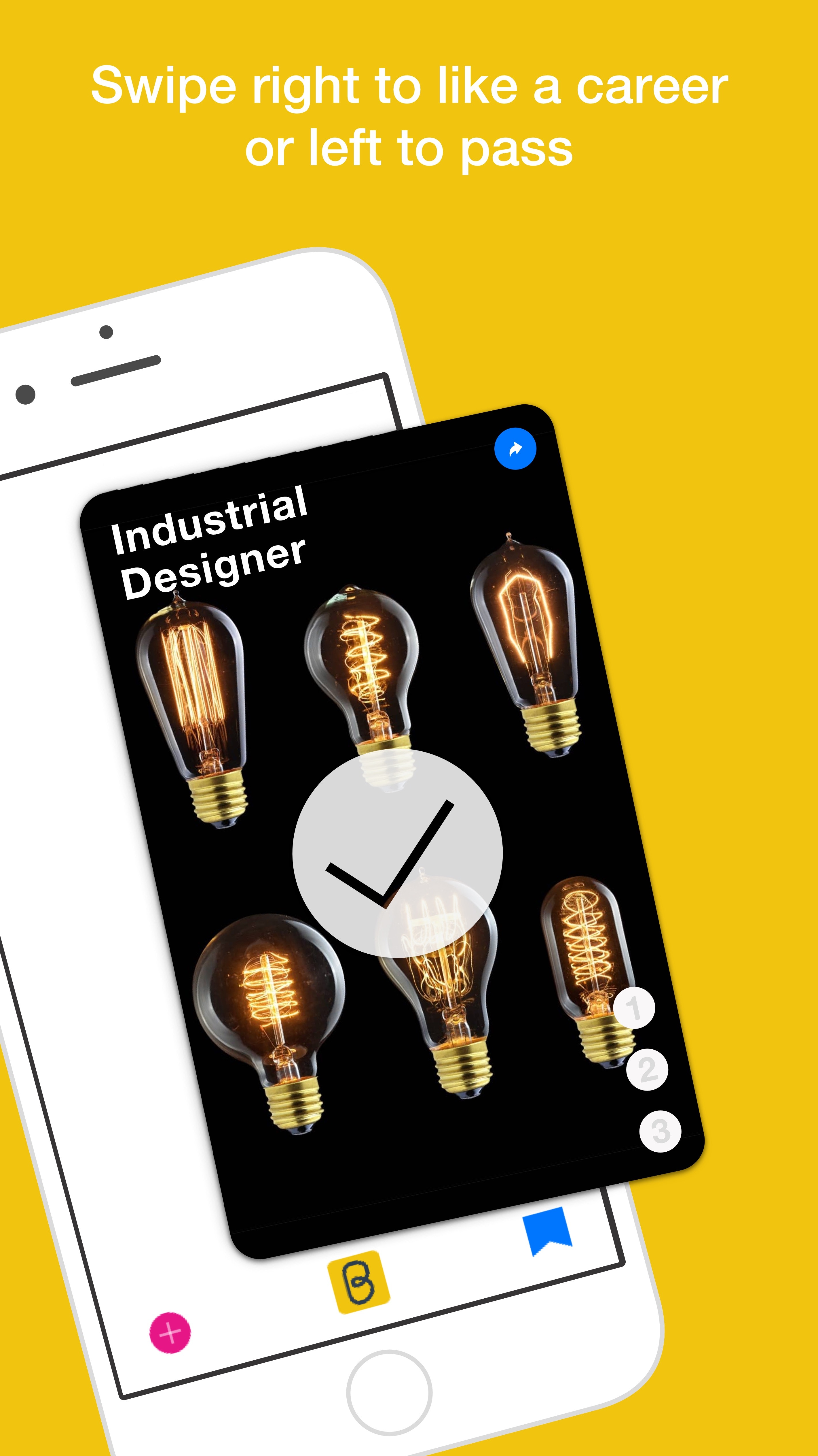 Be is the fun way to discover your future career by swiping through career cards. Swipe right to like a career or swipe left to pass. It's like Tinder but for discovering your future career.
