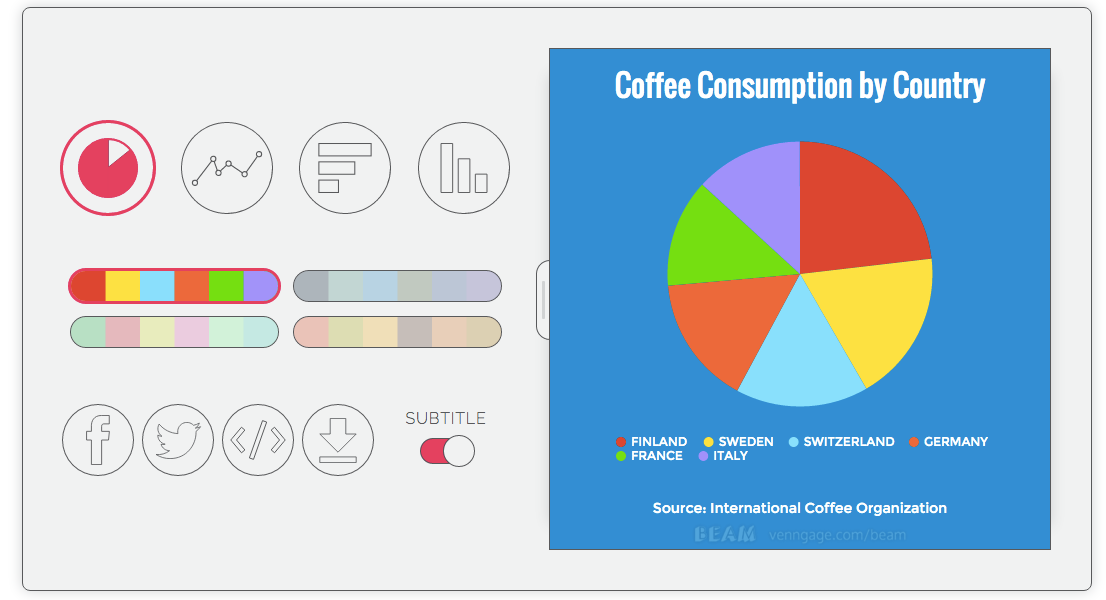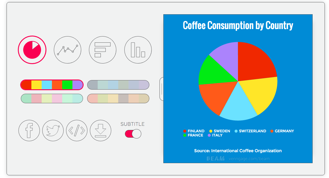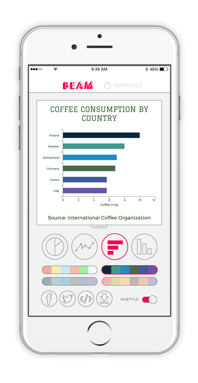 Beam is a dead simple charting tool with beautiful themes. It works on mobile and is optimized for social sharing. Great work from from @wooyi & co from Vengage (www.venngage.com)! He's an OG in the data viz and infographics space.