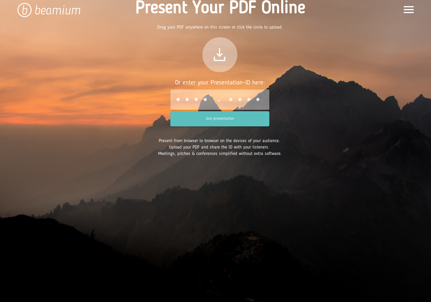 Beamium is an online platform to share and present documents live. Simple and straightforward, no screen-sharing, no downloads, no add-ons and no registration. Present and share documents in a matter of seconds. We are supporting PDF, PPT(x) and Images.
