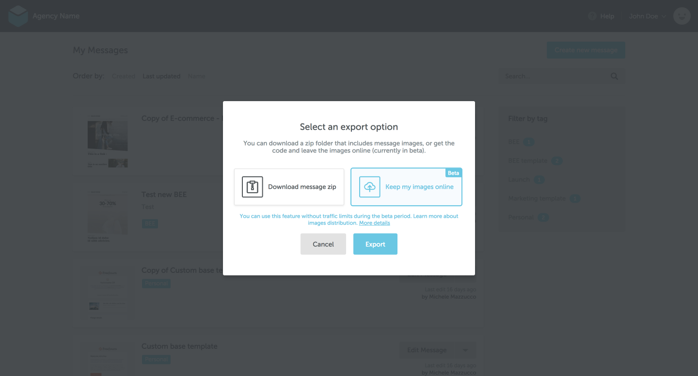 Create, save & export beautiful emails