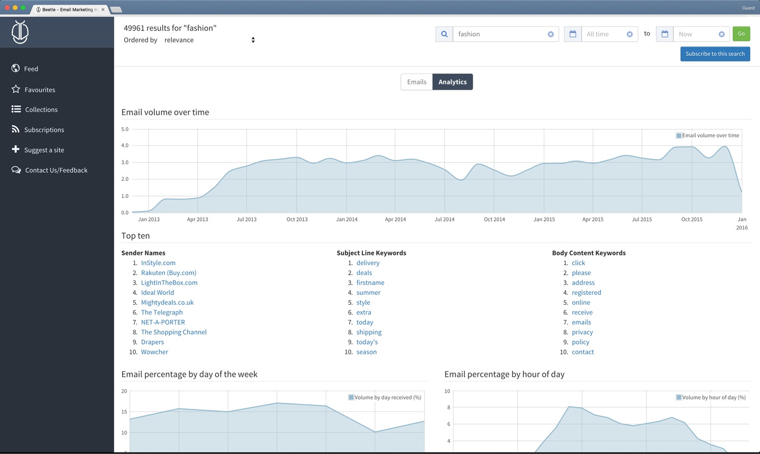 Cool idea. I'm having trouble finding email for major us brands, but I assume more brands will come in time. How will you handle topic/industry searching like Really Good Emails does? A search for ecommerce now only pulls up emails from a company called ecommerce.