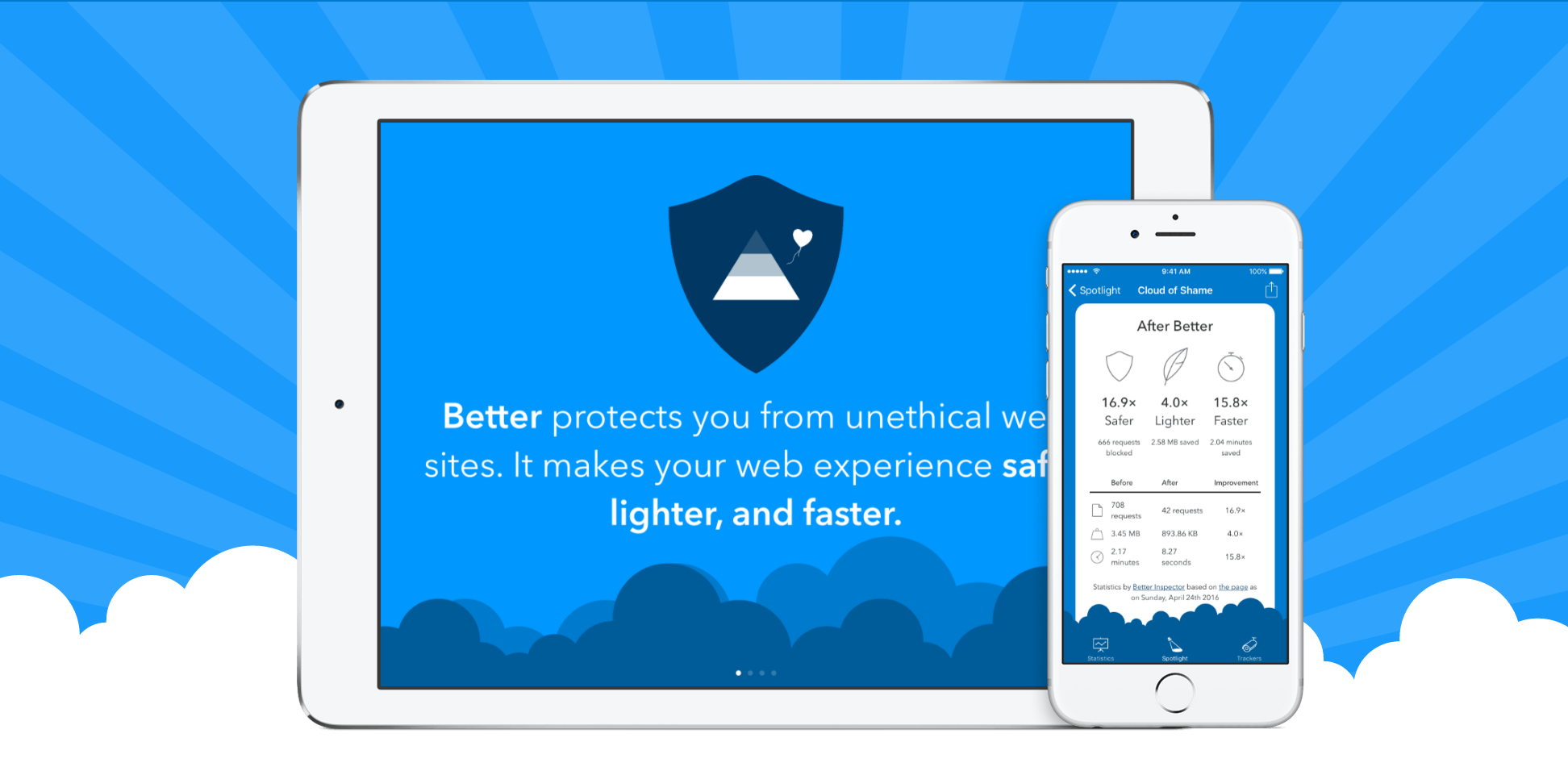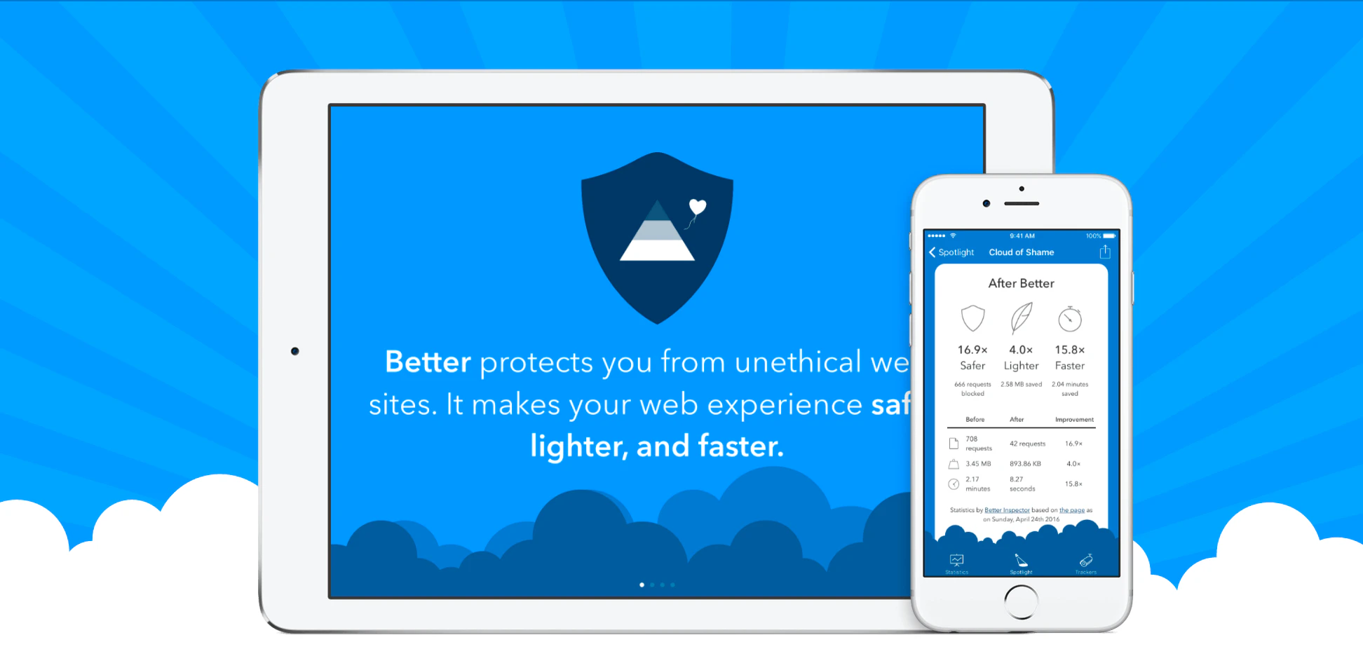 Better is a privacy tool for Safari on iPhone, iPad, and Mac. We protect you from behavioural ads and companies that track and profile you on the web.