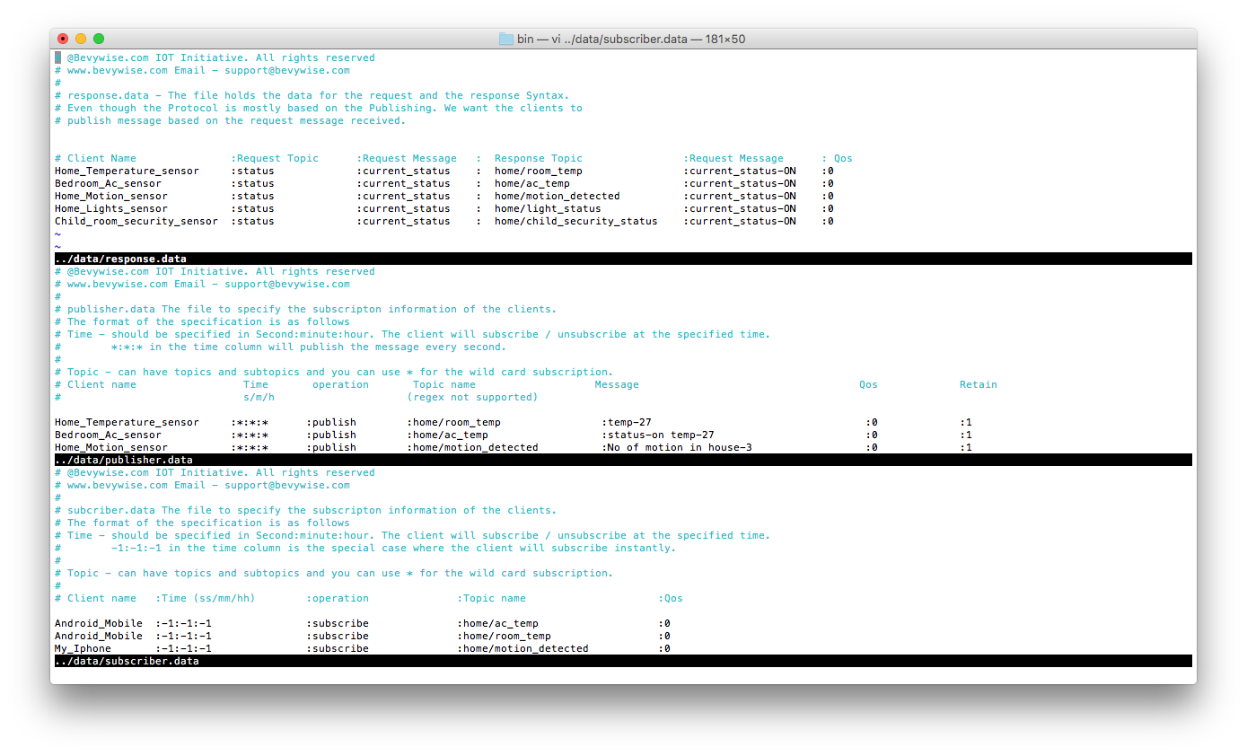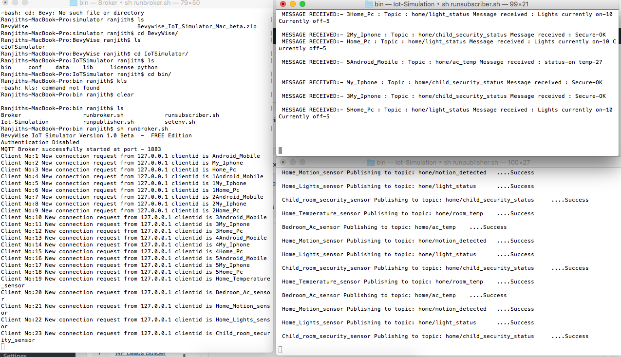 Bevywise IoT Simulator is a powerful command line tool to simulate tens of thousands of IoT / MQTT Devices. The simulator is easy to configure with simple CSV Files. The highlights are :