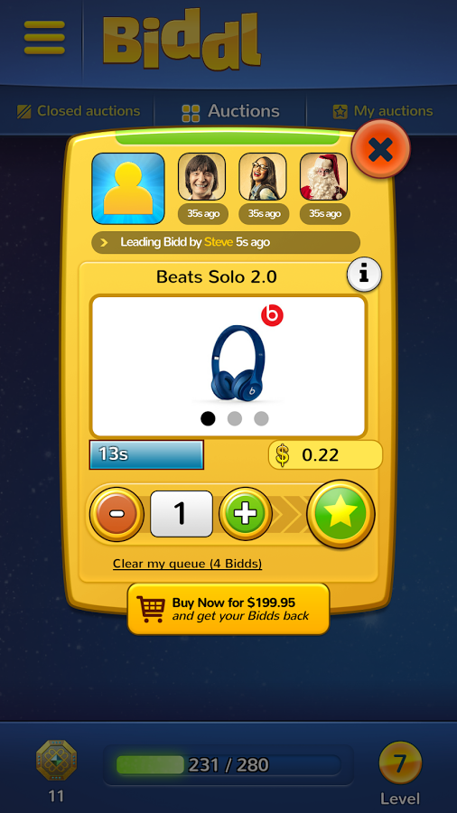 Biddl is a gamified e-commerce app / shopping game. Players can bid on items in an auction and potentially win them for less than their retail prices.