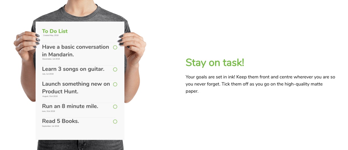 Big A** Todo List is a simple way to keep yourself or your team accountable by getting your goals printed out on a big a** poster so they're front and centre.