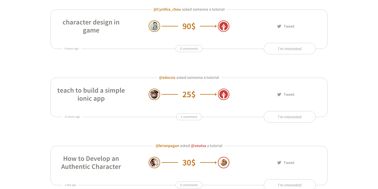 Bad news: our experiment hasn't gained much traction. After an encouraging start, tutorial requests have basically stopped. Good news is that we're working on a slightly different approach/dynamic, probably with another name. I'll keep you updated!
