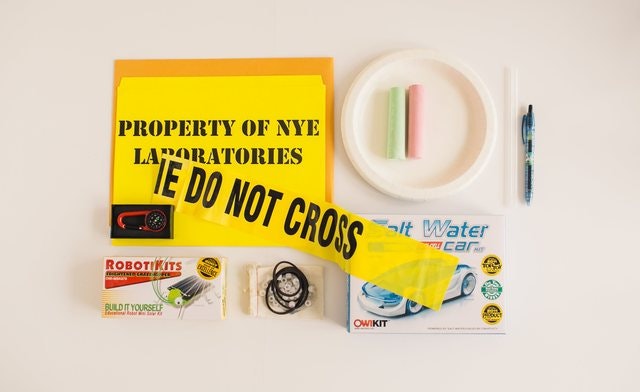 Bill Nye will send you items related to cool gadgets, culture, and technology. And he always sends along a note to describe the theme of the package and the meaning behind each object.