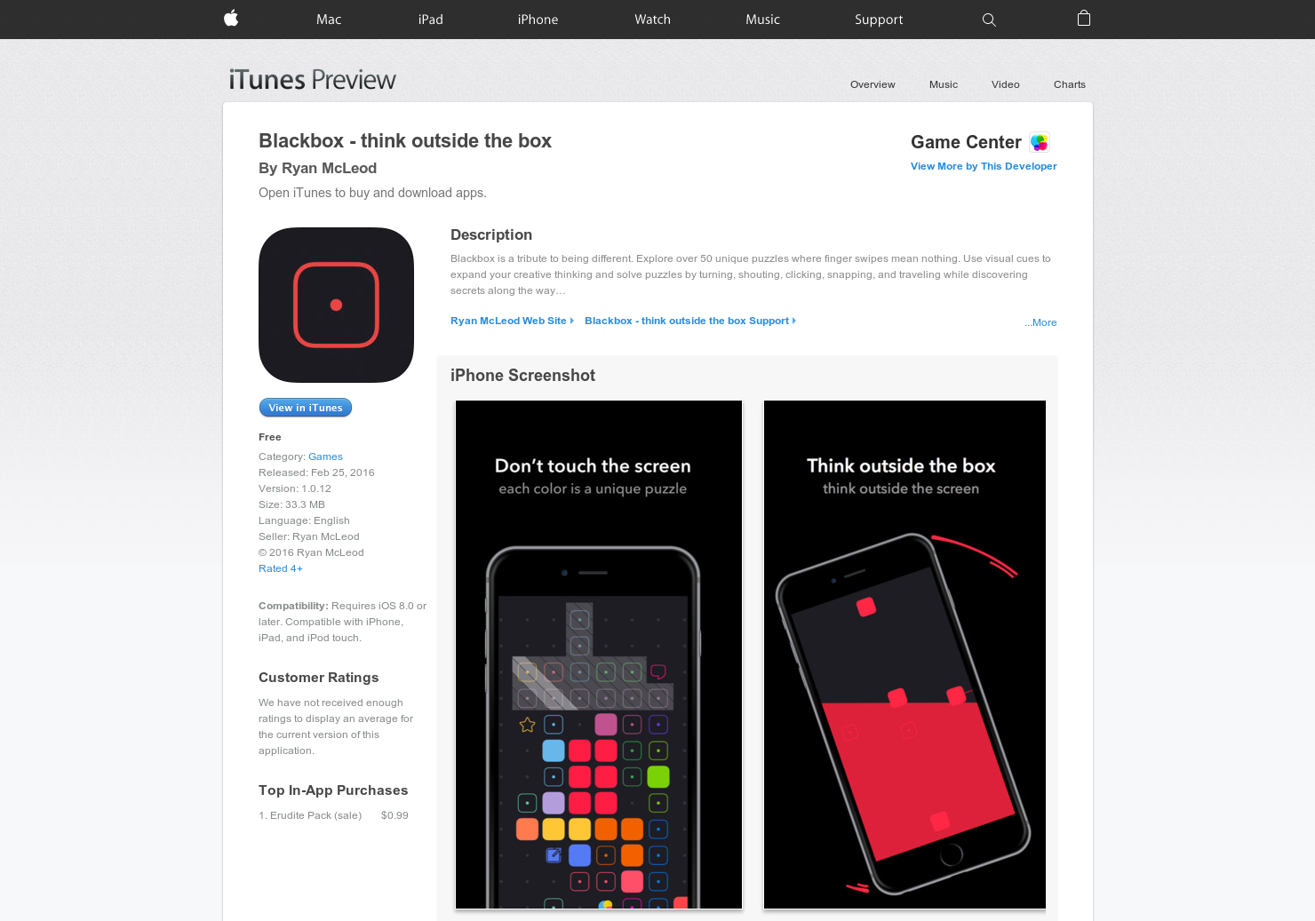 This game is amazing! I'm surprised by how addicting it. I hope Apple recognizes Blackbox for how unique it is compared to other puzzle games. My friends and I are challenging each other to see who can complete the game quicker. I love how the puzzles are minimal and actually make you think.