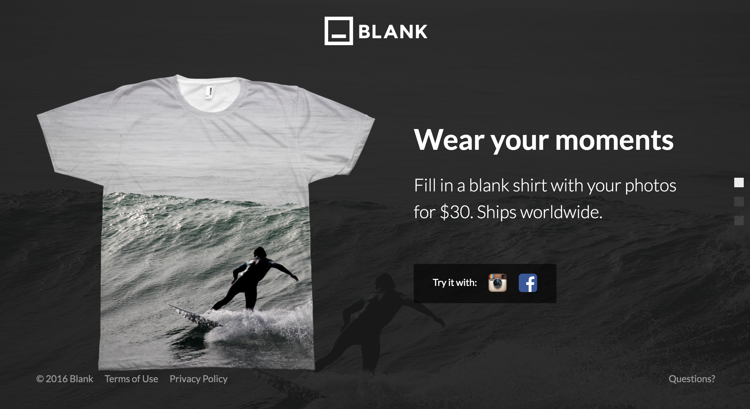 We featured Blank on BetaList earlier this month and when they launched a few days ago I was positively surprised by the simplicity of their product design. It's a matter of connecting with your Instagram or Facebook account, picking a photo, a t-shirt size, and entering your credit card info. I think there were some minor customisation options, but the defa… See more
