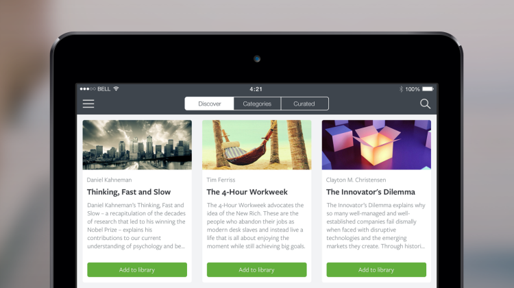 I played with Blinkist a few weeks ago. It's a neat app, I like the completion mechanics it uses with the progress bar and completed chapters.