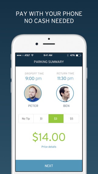 I've used this app. Super slick and nice integration between valet services and your ideal pickup location.