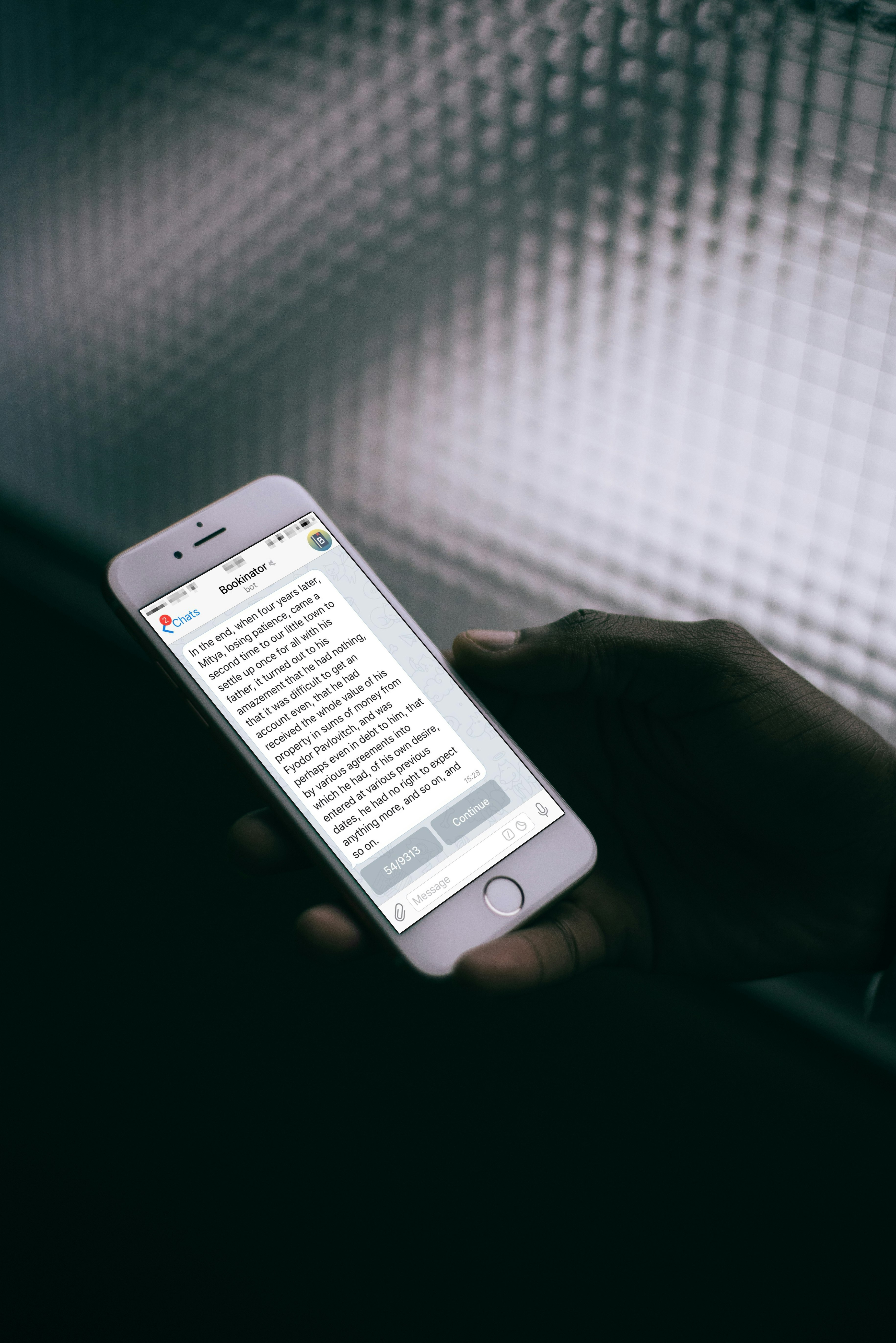 Bookinator is a telegram bot that picks up a file you sent it (it supports fb2, epub, mobi or just plain txt if you have nothing better to do), applies some basic text formatting to match up with the book, splits it into compact messages that fit your screen just right, and sends them back to you, one by one, pictures i… See more