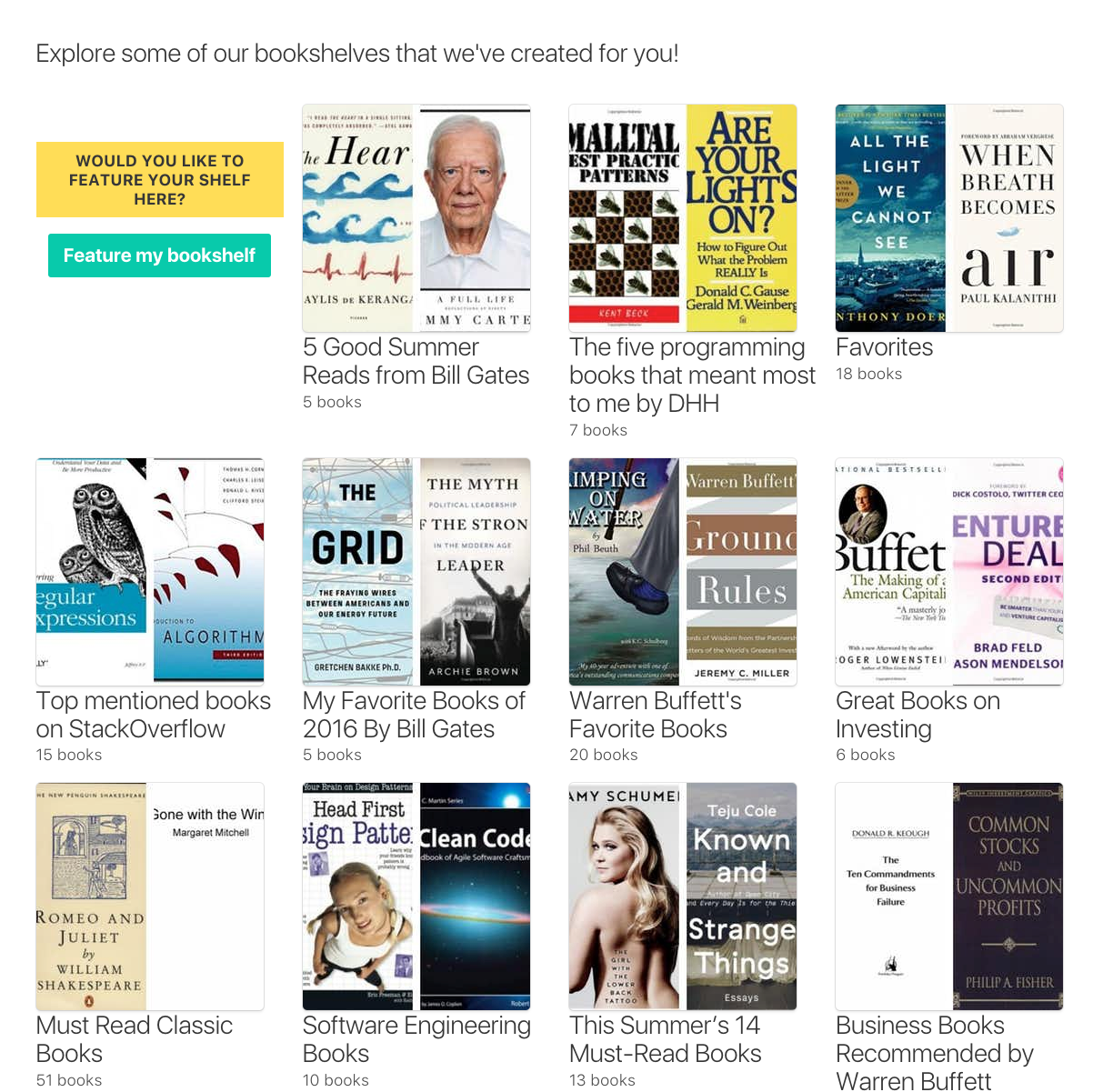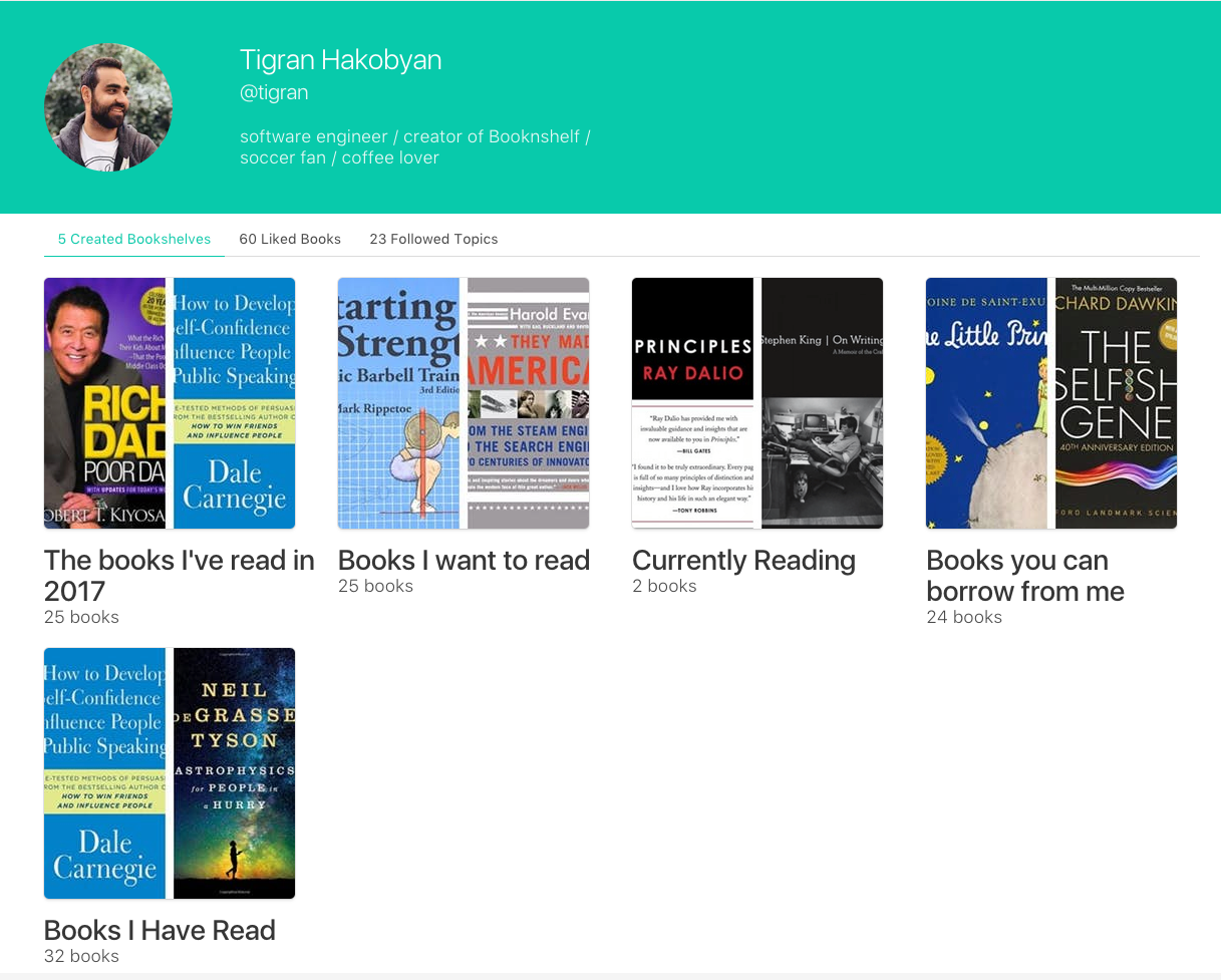 I’ve been keeping track of all my books in different notes apps and always been super curious to see what others are reading. I thought it would be an easier if there was a simple website that does that. I’ve also created curated bookshelves of many entrepreneurs and famous people.