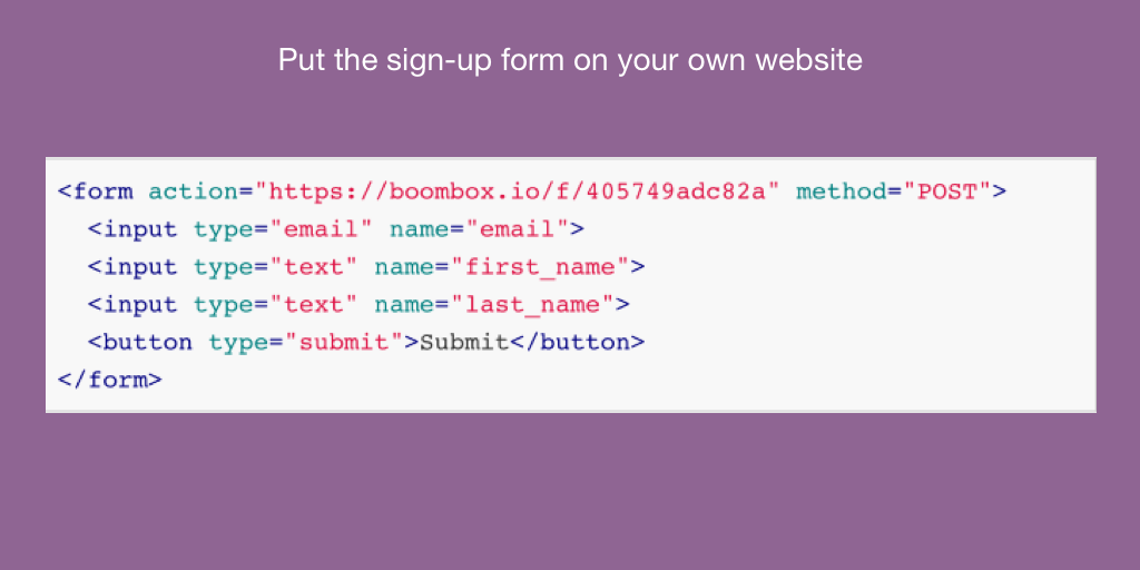 - either use the hosted sign-up form or embed it on your own website with HTML,