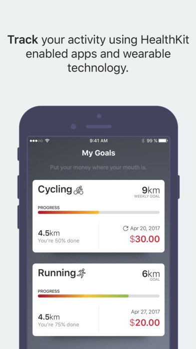 Make a goal on the app and input how much money you are willing to wager that you will reach the goal by a specific da… See more