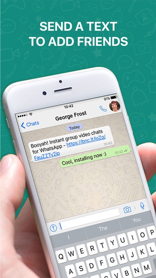 Booyah is video chatting made easy - there's no signups, no friend requests and no problems :) Just one tap to invite your WhatsApp friends or groups and you're good to go. It's free, private, secure and incredibly easy and fun to use.