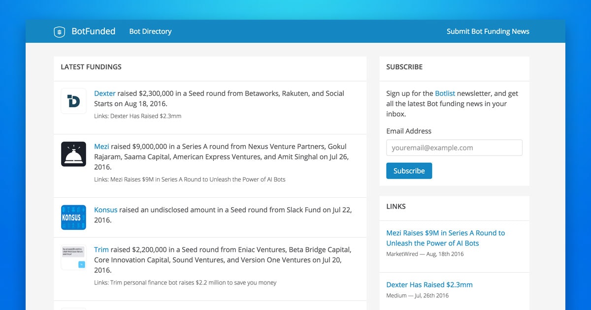 Botlist is quickly becoming *the* place for everything bots. I think a big part of building a new ecosystem is solving the discovery problem and you guys are on track for that.