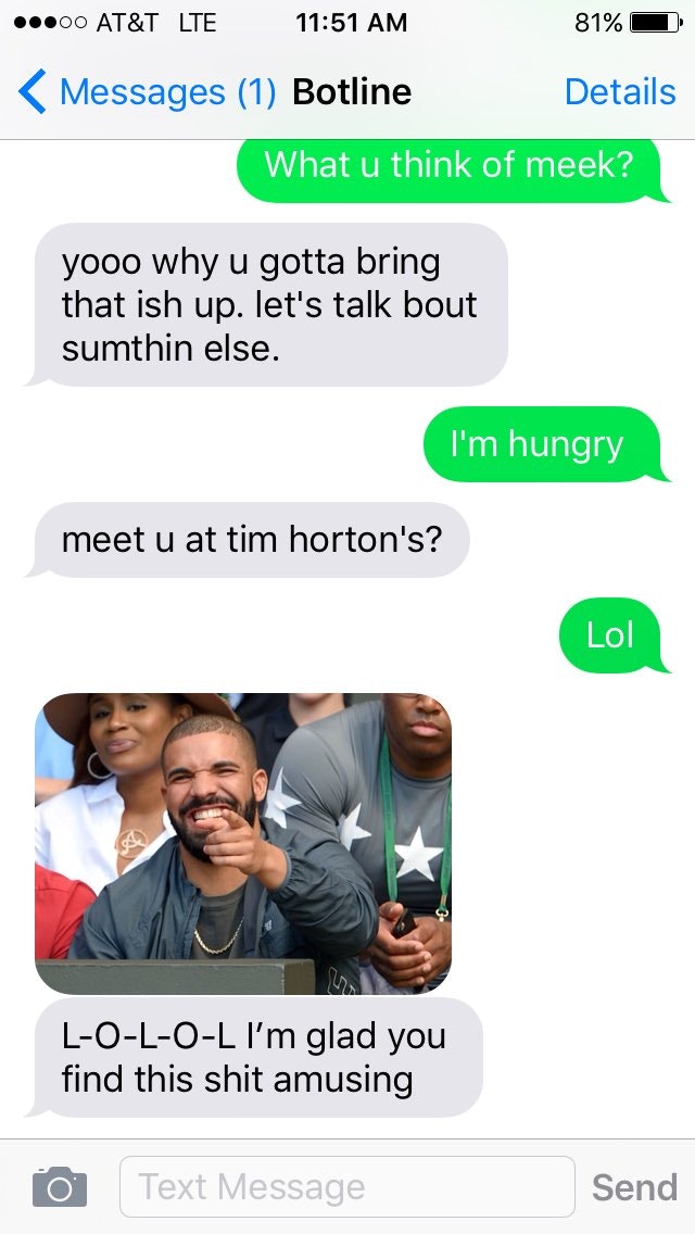 I thought it'd be fun to make an SMS-bot that lets you simulate texting with Drake himself. Emotional rollercoaster and all. All the responses ar… See more