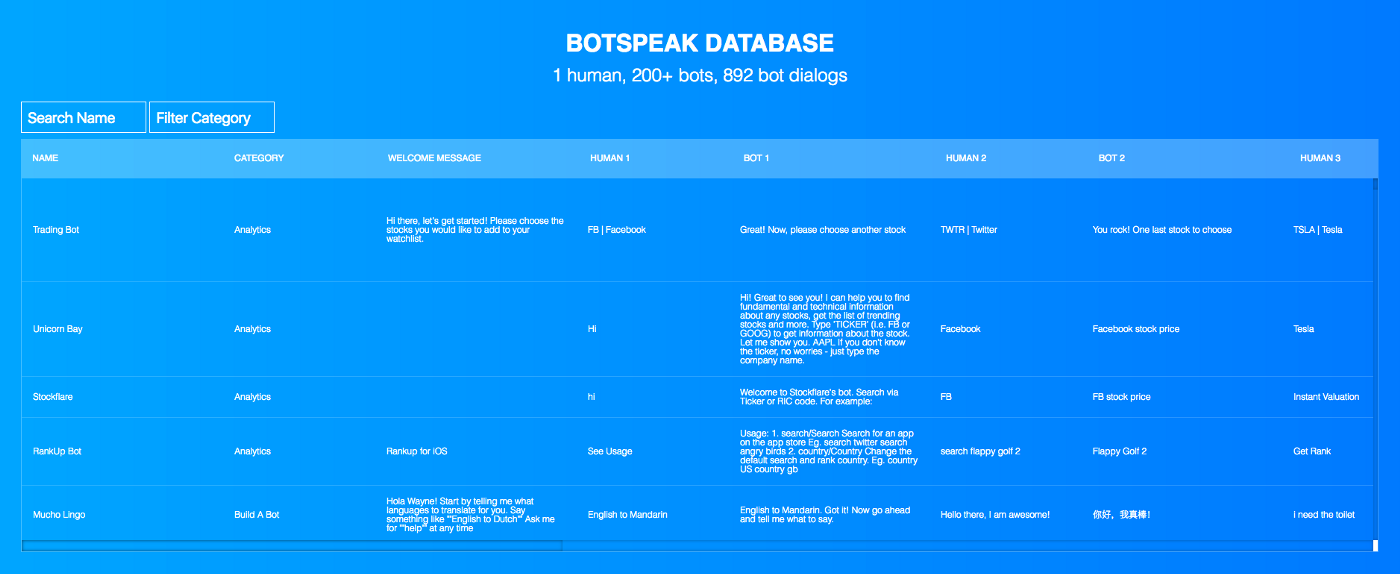 For now, you can contribute to the BotSpeak database by adding up to 8 say/resp… See more