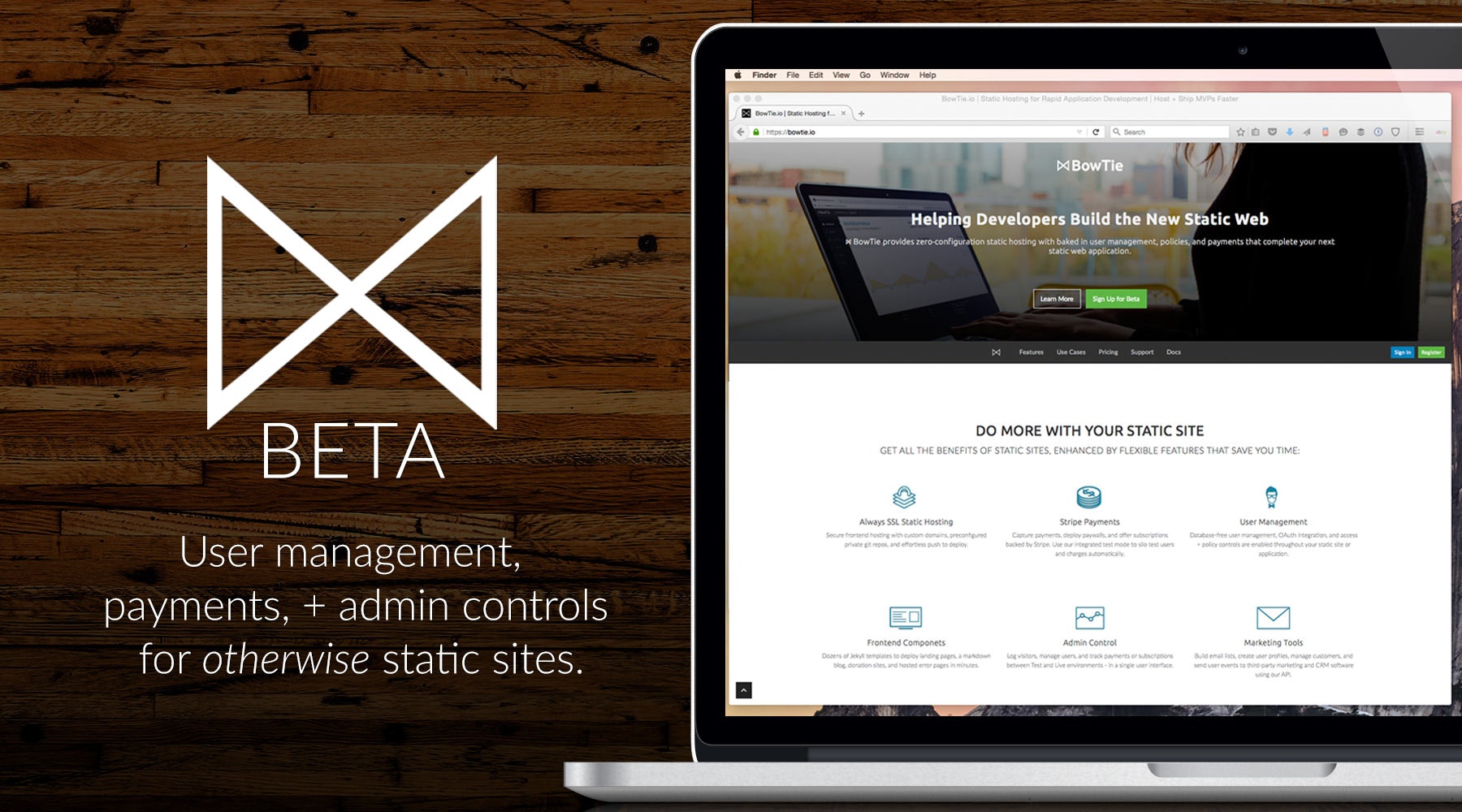 We initially conceived of BowTie to help us string together services and create our own MVPs faster. We turned BowTie into a product because we realized that our service layers made it easier to do more with many static sites.