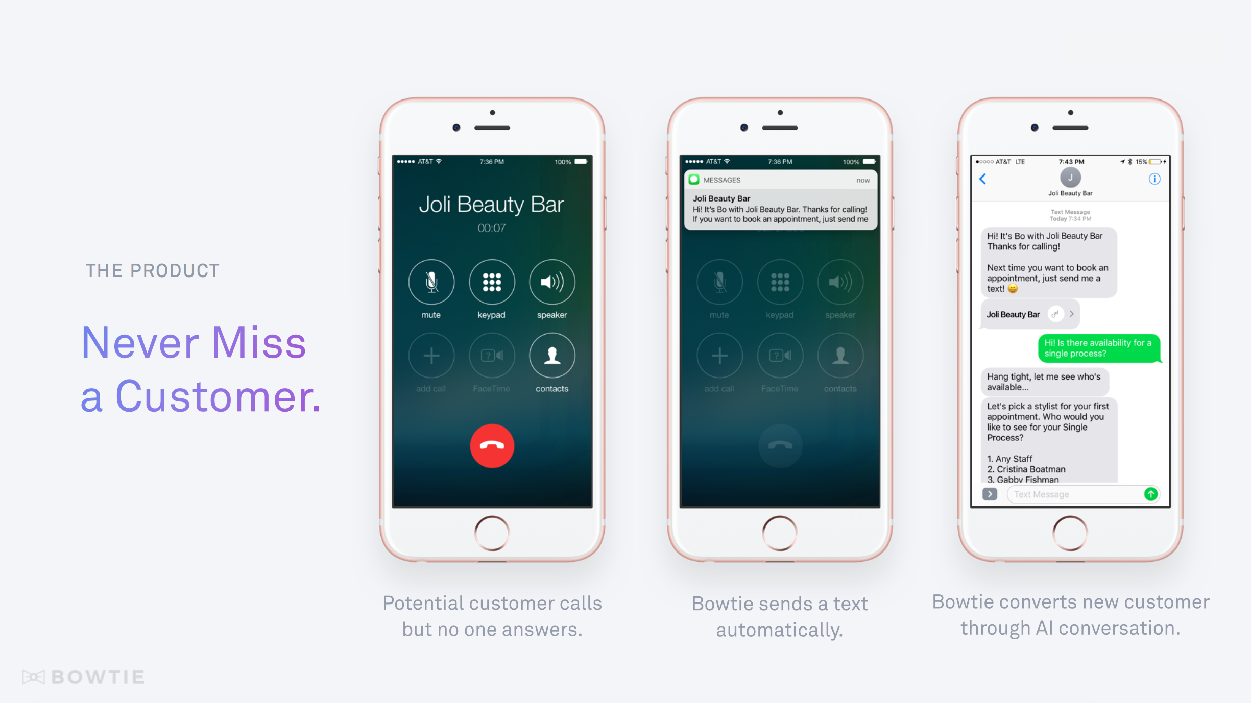 This caught my attention as it looks like there's a specific focus for Bowtie on SMBs, particularly those merchants who use Mindbody to accept reservations and bookings. One of the features that sticks out is "call back" messaging, whereby you can ring a merchant (i.e. think a hair salon) and rather than waiting on hold, you can receive availability for appo… See more