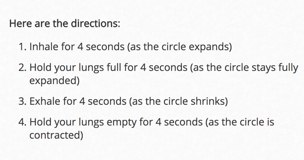 I'm a huge "dork for meditation" and box breathing actually works better for me when I'm feeling "escalated" because it provides visual and breath guidance which helps focus my mind when it's trying to run off in fifty million directions.