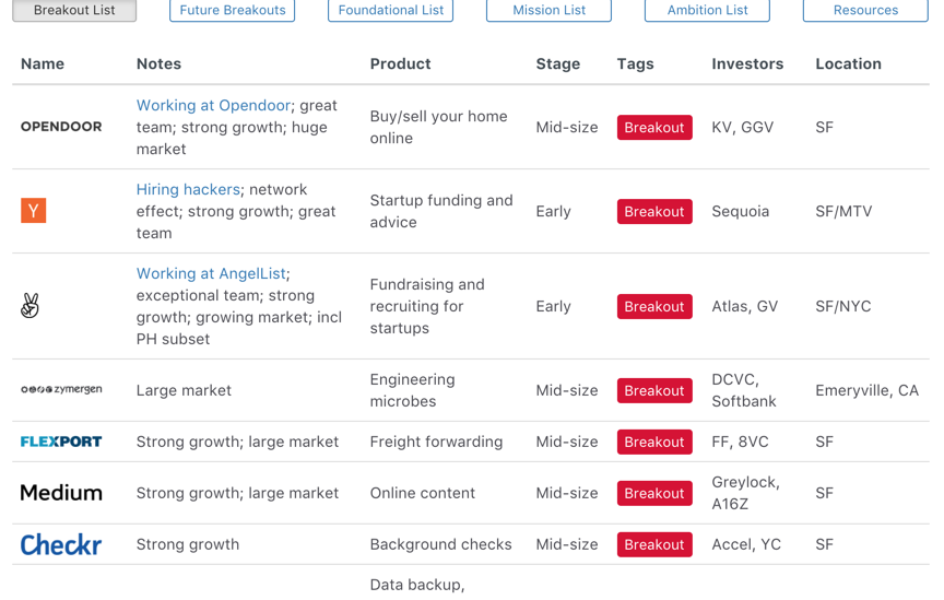 Hey all, a smart friend of mind has been curating a list of high growth startups and opportunities and other resources. They prefer to keep a low profile for personal reasons and so I’ve added @BreakoutList as a maker so they will comment.