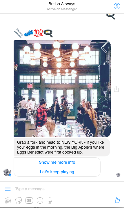 We wanted to test a couple of things with this. Could we get BA access to a new demographic? Could we use a bot as a piece of campaign collateral? Could a bot even hold up a whole campaign? Which is a question we are throwing around with a number of brands. Essentially how can a bot show the personality of a brand? Without over promising with an unrealistic… See more