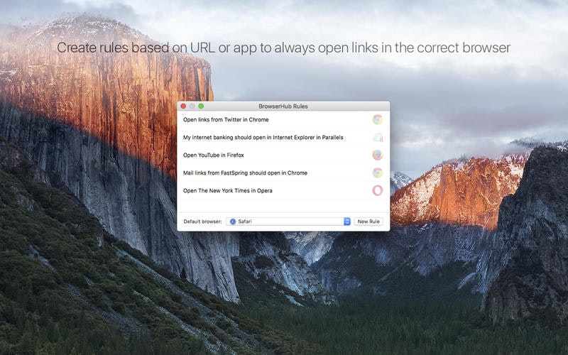 I use multiple browsers for multiple different purposes. It is annoying to switch between them. With this app you don't have to do that anymore. For example say you like using @ProductHunt on Chrome, with BrowserHub if you open a link to PH it'll automatically open in Chrome even if safari is your default browser.