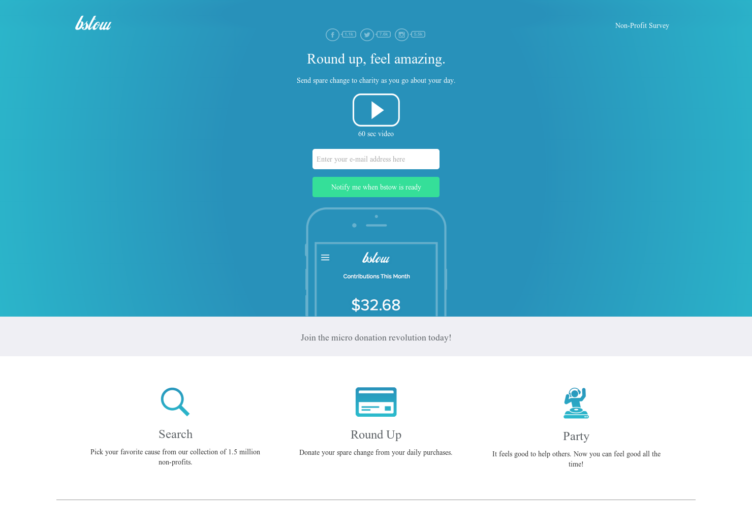 -Link a credit or debit card, pick any non-profit, and Bstow automatically rounds up your spare change and sends it to the non-profit you chose