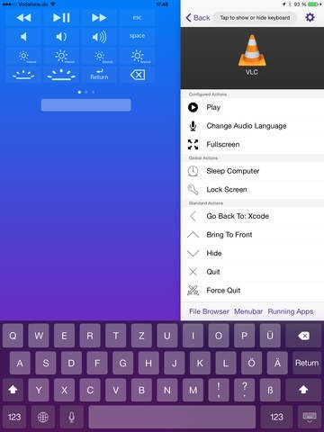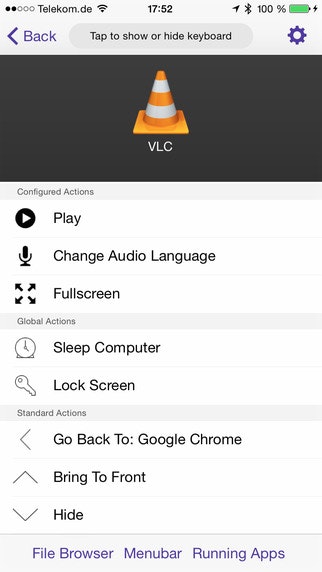 BTT Remote (BTT stands for BetterTouchTool) is a great remote control for your Mac. It allows you to take almost full control over your Mac and all the apps installed on it.
