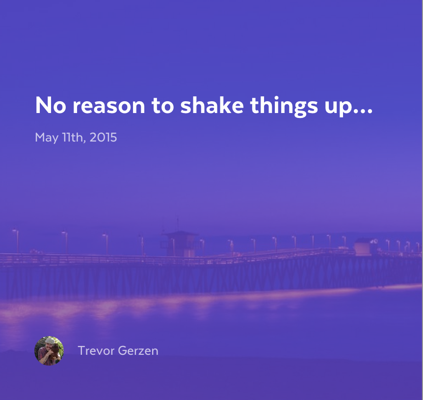 January of this year I bailed out on normal life, sold just about everything and bought an RV. Now my wife, 3 kiddos and I live on the road and are traveling the US for all of 2015. Was going to blog about the whole thing, but none of the options out there had exactly what I wanted. So I was going to make a tool for my wife and I to use that would make posti… See more