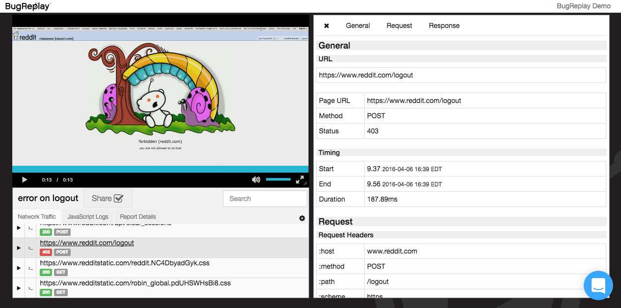 BugReplay is a web-based feedback tool in the form of a browser extension that creates a synchronized recording of your screen, network traffic, JavaScript logs and other browser data. It can be used with your team and currentl… See more