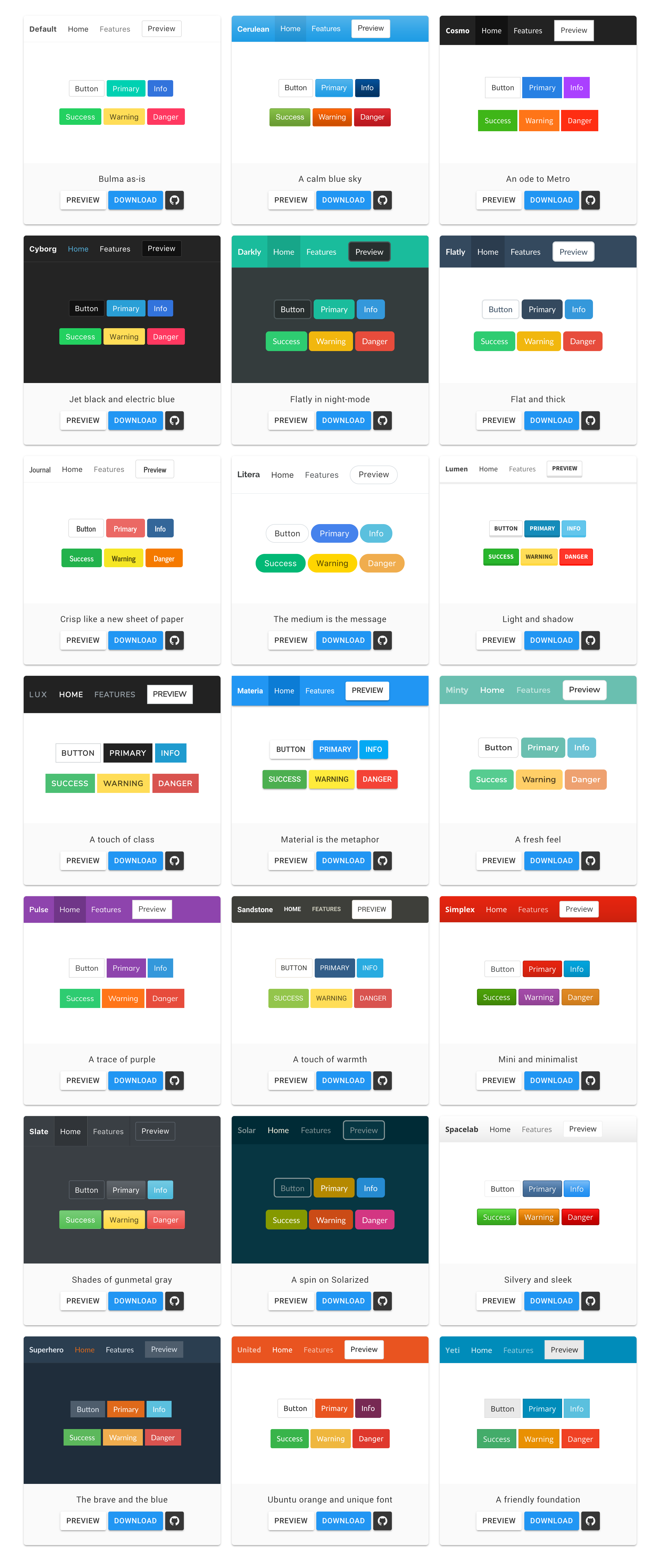 Today, it is my pleasure to share with you’ll Bulmaswatch — free themes for Bulma.