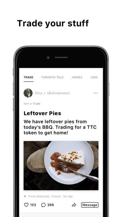 "Bunz is a community of people trading away things they no longer need in exchange for things that they do need or want. Common trade currencies include wine, transit fare, and tall cans."