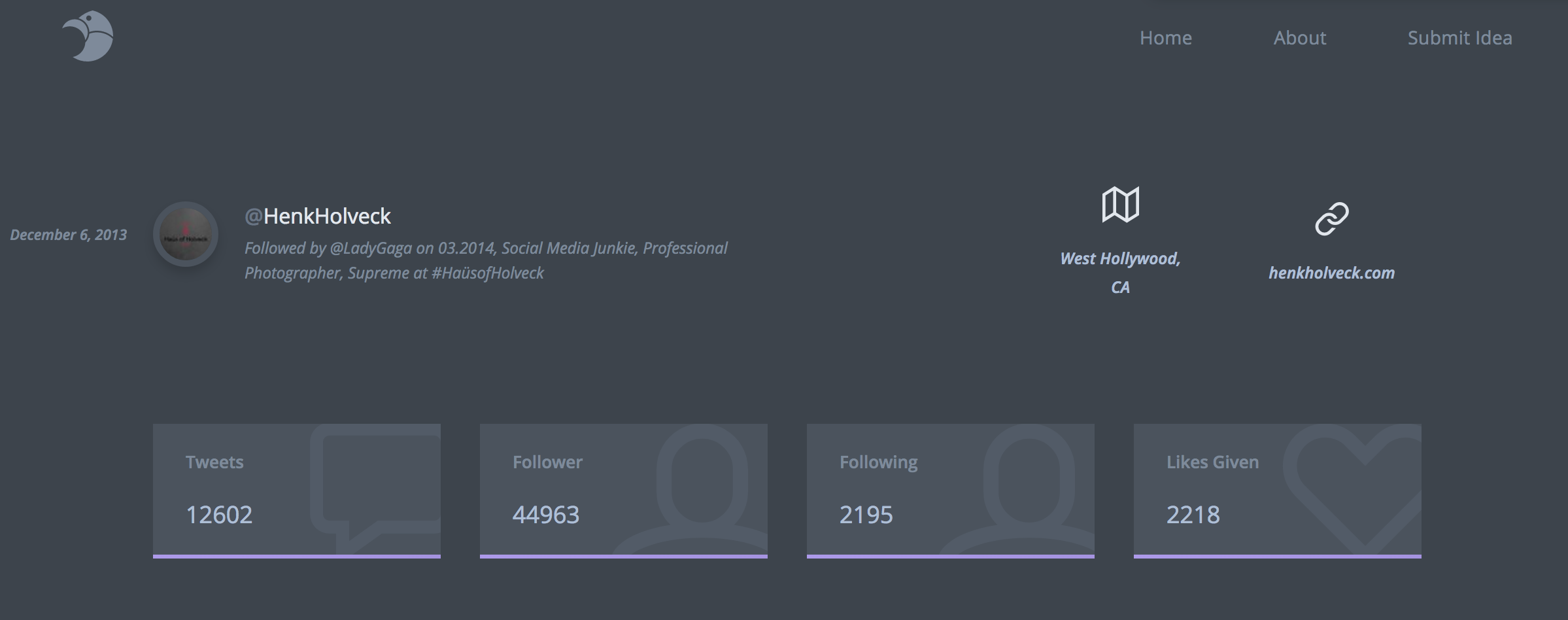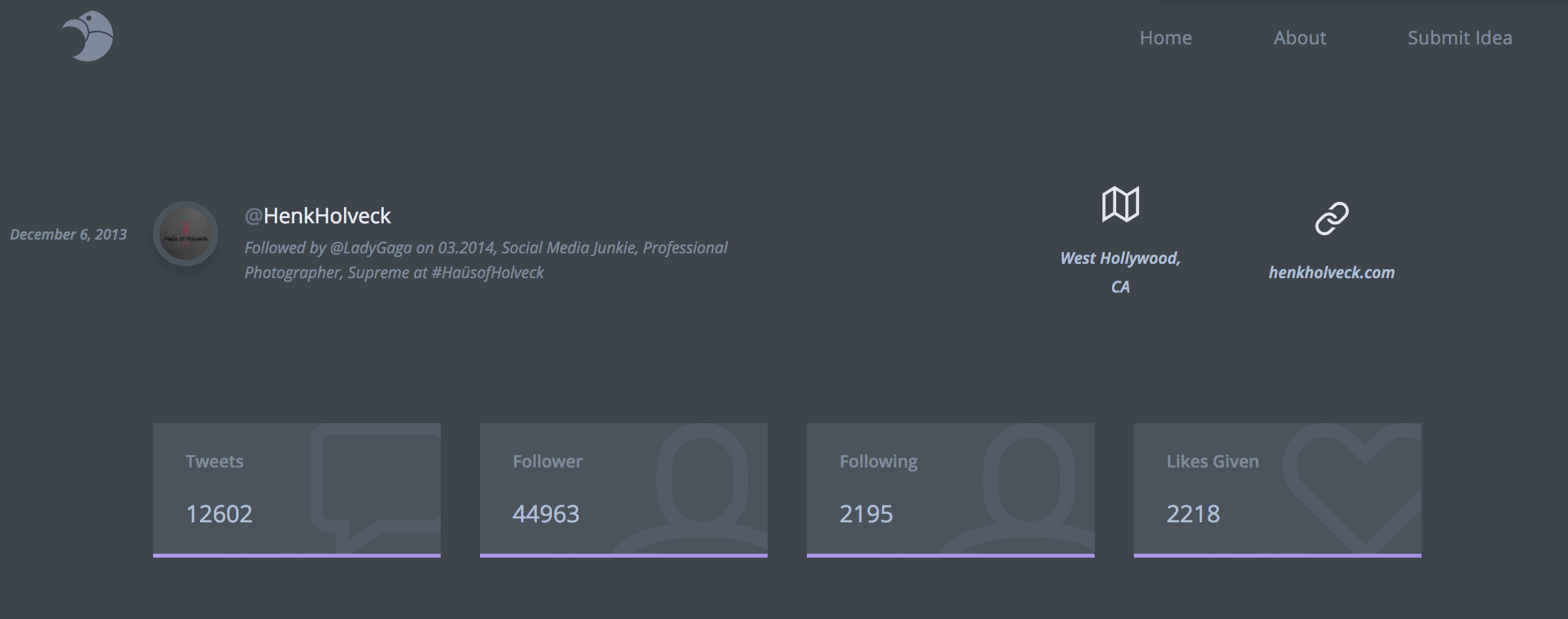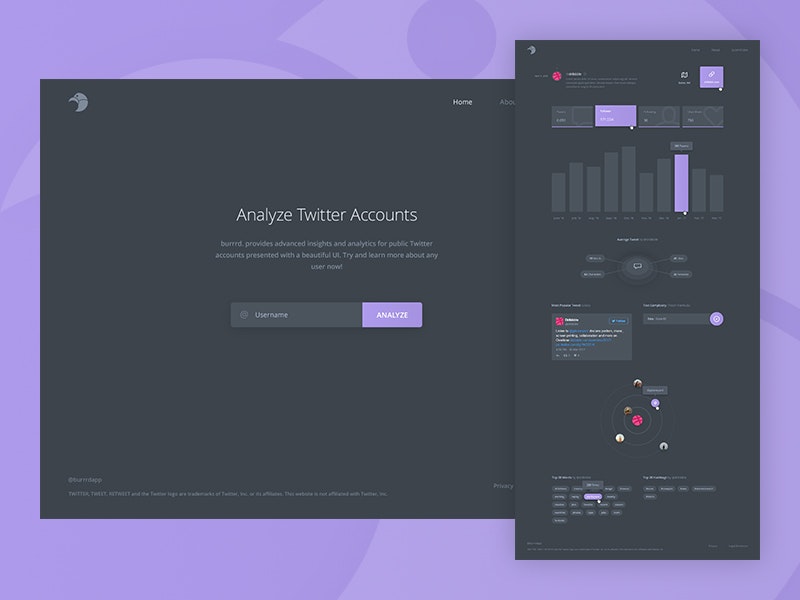 This project was inspired by the great "Reddit User Analyser" and especially the comment section over there (https://www.producthunt.com/post...). I really enjoyed the site's overall experience and started working on a similar project for Twitter accounts. burrrd. was born.