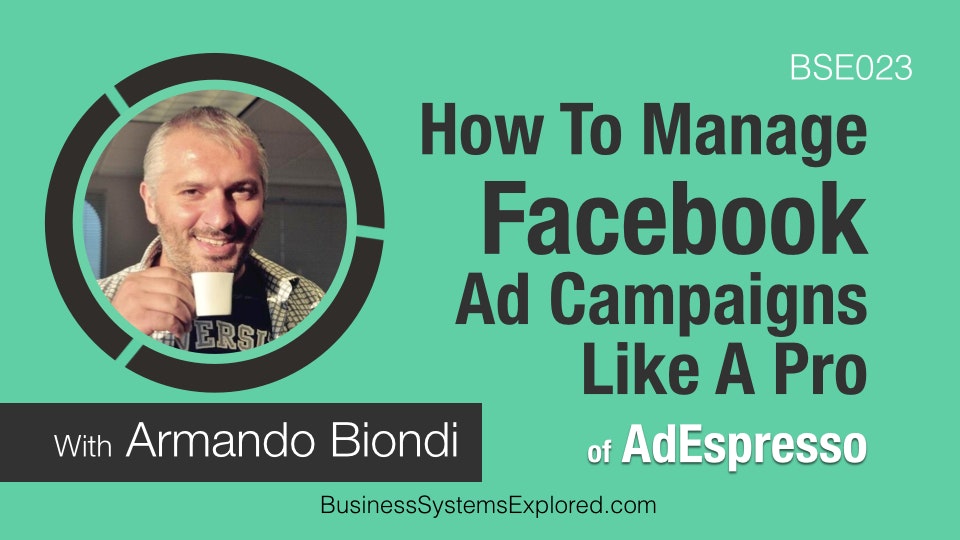 In this episode of Business Systems Explored, we speak to Armando Biondi (@armandobiondi), Co-Founder and COO at @AdEspresso. Armando shares a system for managing a Facebook ad campaign like a PRO.